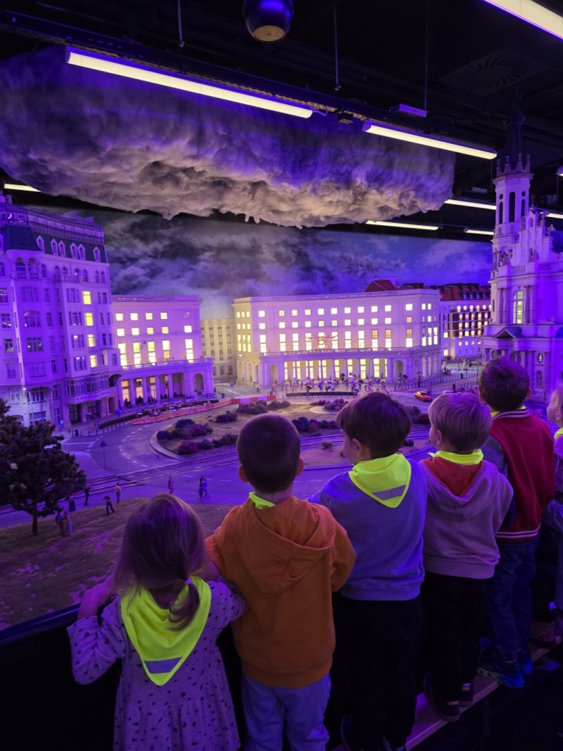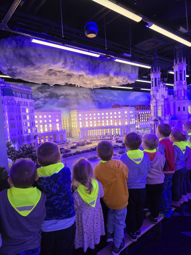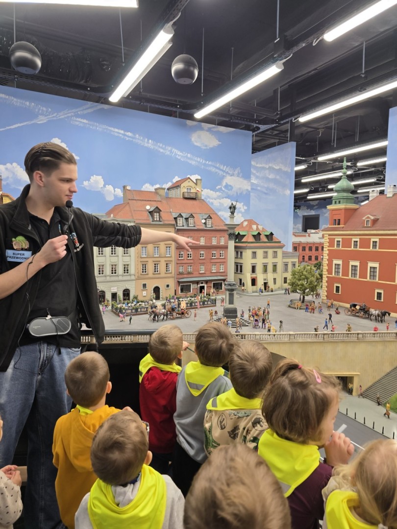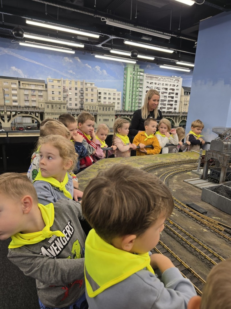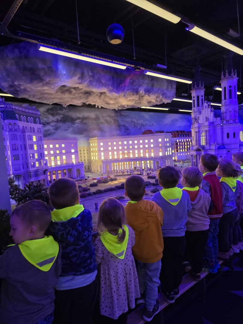 Nasze Przedszkolaki z grupy “Biedronki” i “Rybki” dnia 3.11.2025r. wybrały się na wycieczkę do Kolejkowa – fascynującego miejsca, gdzie świat kolei, codziennego życia został przedstawiony w miniaturze. Kolejkowo Warszawa to żywe miasto w skali 1:25 – z burzą, deszczem, zmieniającym się dniem i nocą oraz ruchem ulicznym. To nie tylko makieta – to spektakl codzienności, który opowiada o stolicy w sposób inny niż wszystkie. Wśród odwzorowanych miejsc znalazły się m.in.: Zamek Królewski, Cytadela, Most Gdański z kultowym neonem „Miło Cię Widzieć”, Pomnik Małego Powstańca, bazar Różyckiego, Stare Miasto, Górka Szczęśliwicka, i wiele innych.
