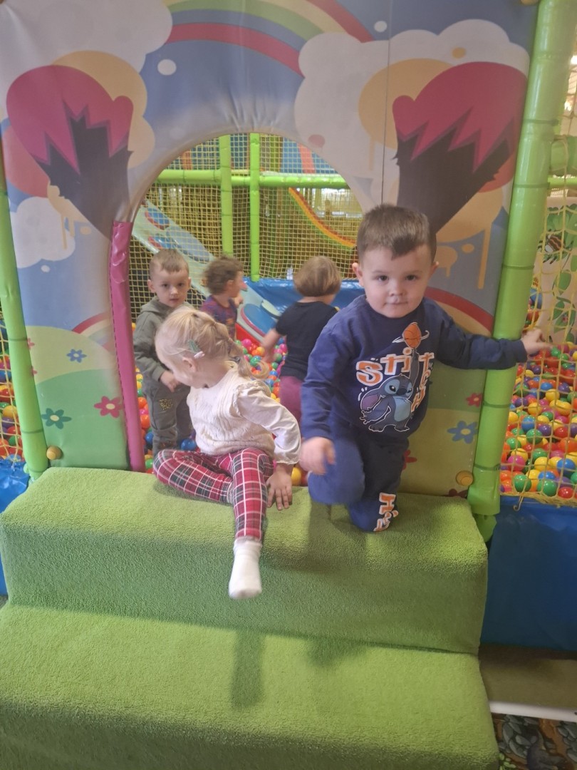 Dnia 27.11.2024 dzieci z grup “Pszczółki” i “Kotki” wzięły udział w wycieczce autokarowej do sali zabaw “Bajkolandia” w Warszawie. Przedszkolaki wspaniale bawiły się w basenie z piłeczkami, skakały na trampolinie, korzystały z urozmaiconego toru przeszkód, zjeżdżały na zjeżdżalniach. Celem wycieczki było rozwijanie sprawności ruchowej dzieci. Wspaniała zabawa trwała 2 godziny. Wyjazd był bardzo udany, dzieci bawiły się rewelacyjnie, integrowały się w czasie wspólnych zabaw, a na każdej buźce gościł nieustannie bezcenny uśmiech trzylatka.