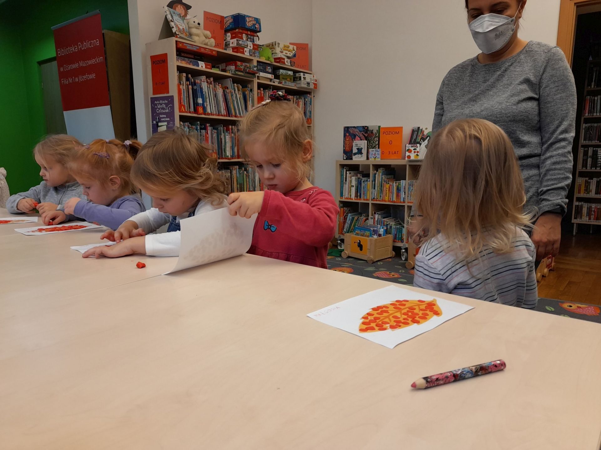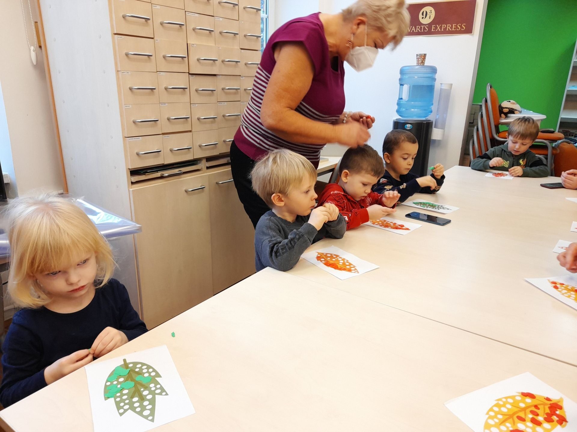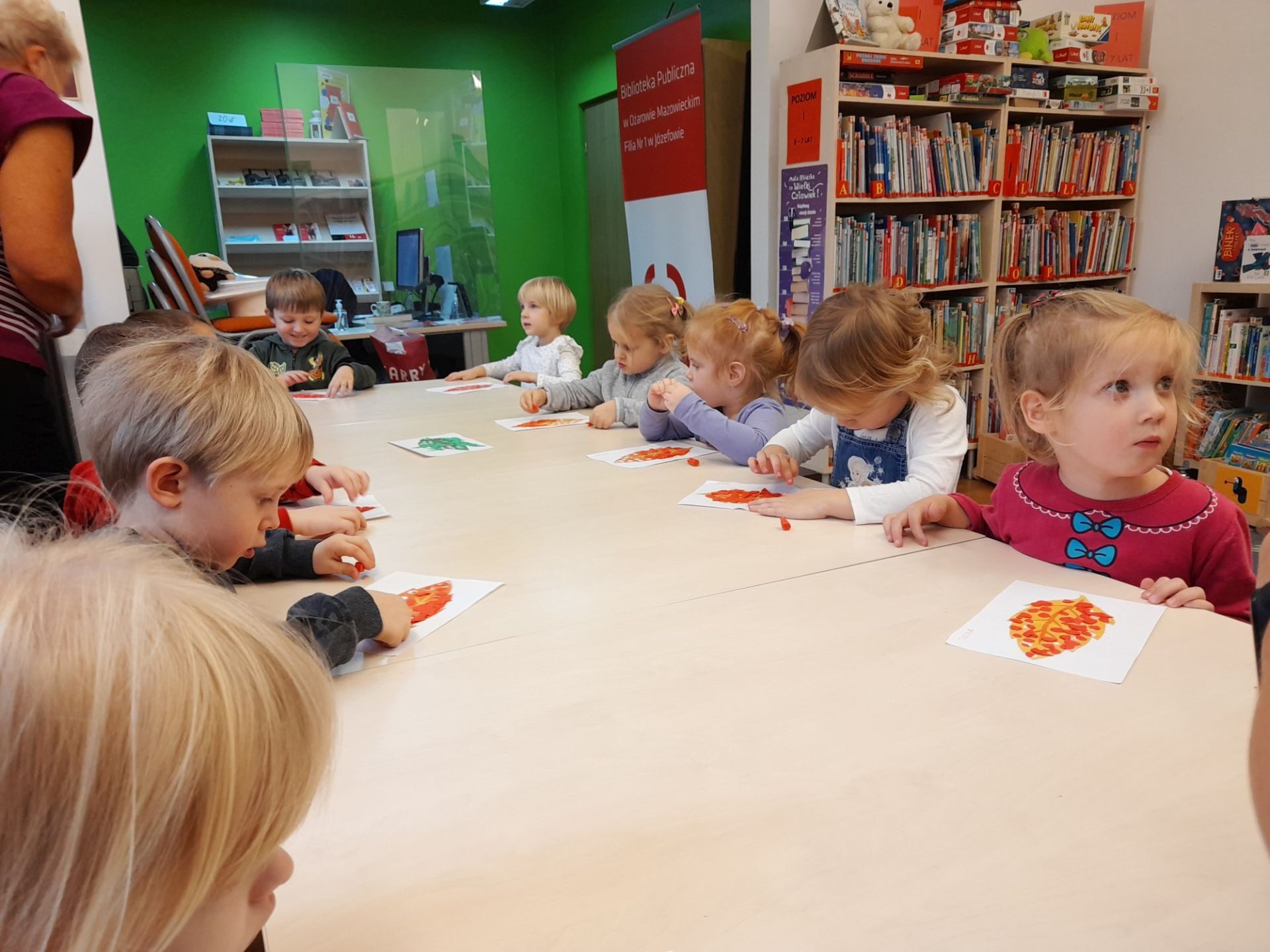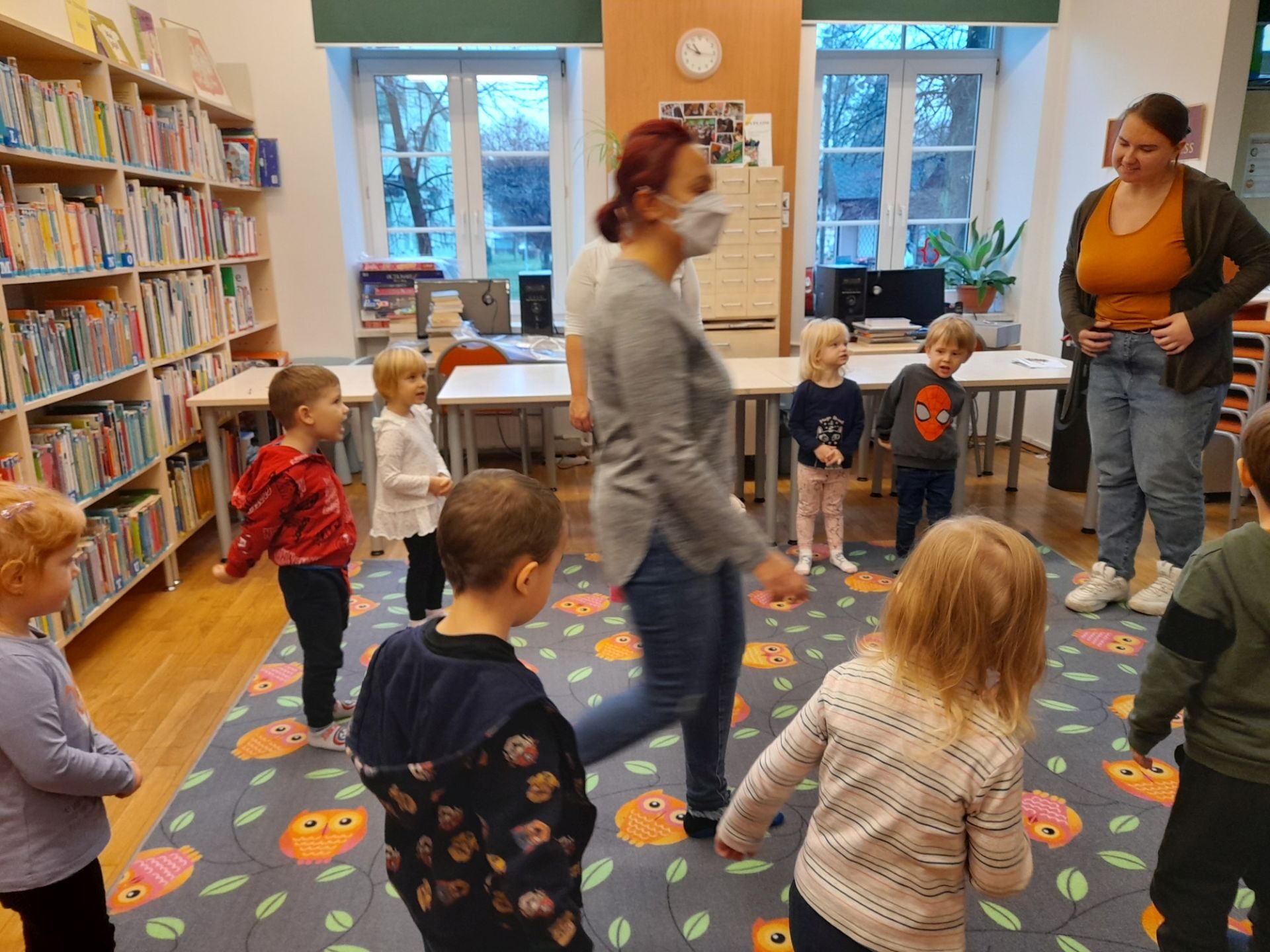 Dnia 19.11.2021 dzieci z grupy Kotki odwiedziły Bibliotekę w Józefowie. Panie bibliotekarki poprowadziły ciekawe zajęcia. Przedszkolaki wysłuchały opowiadania pt. „ Przygody małego Jeżyka”. Rozwiązywały zagadki o jesieni i zwierzętach leśnych. Bawiły się z chustą animacyjną – były to zabawy ruchowe o tematyce jesiennej. Zwieńczeniem zajęć było wylepianie plasteliną liścia i oglądanie książek dla dzieci.