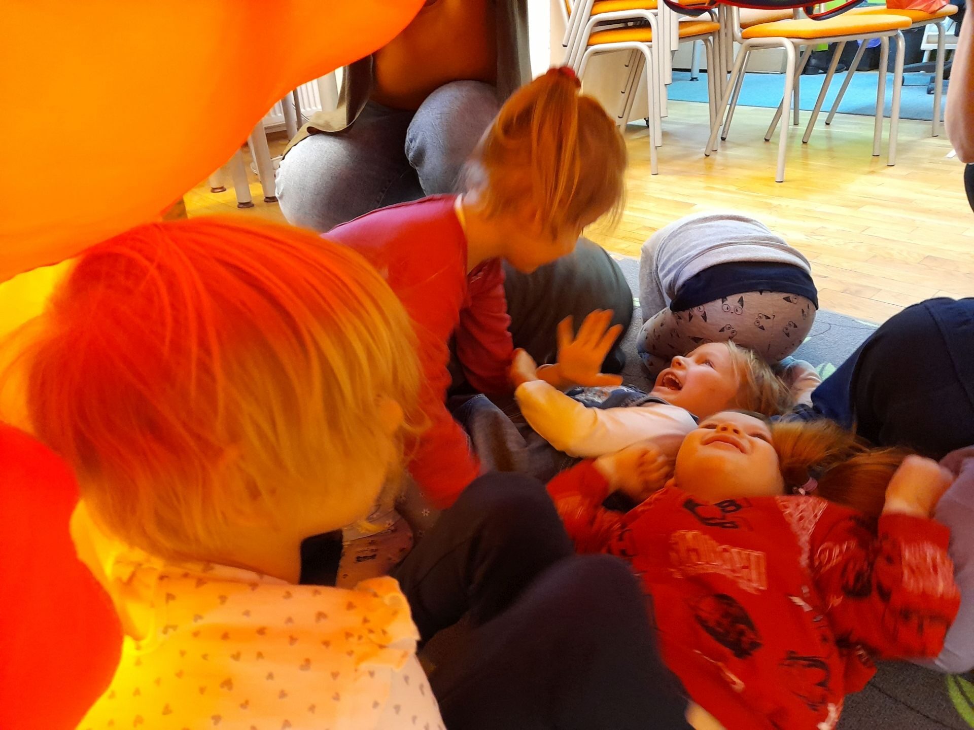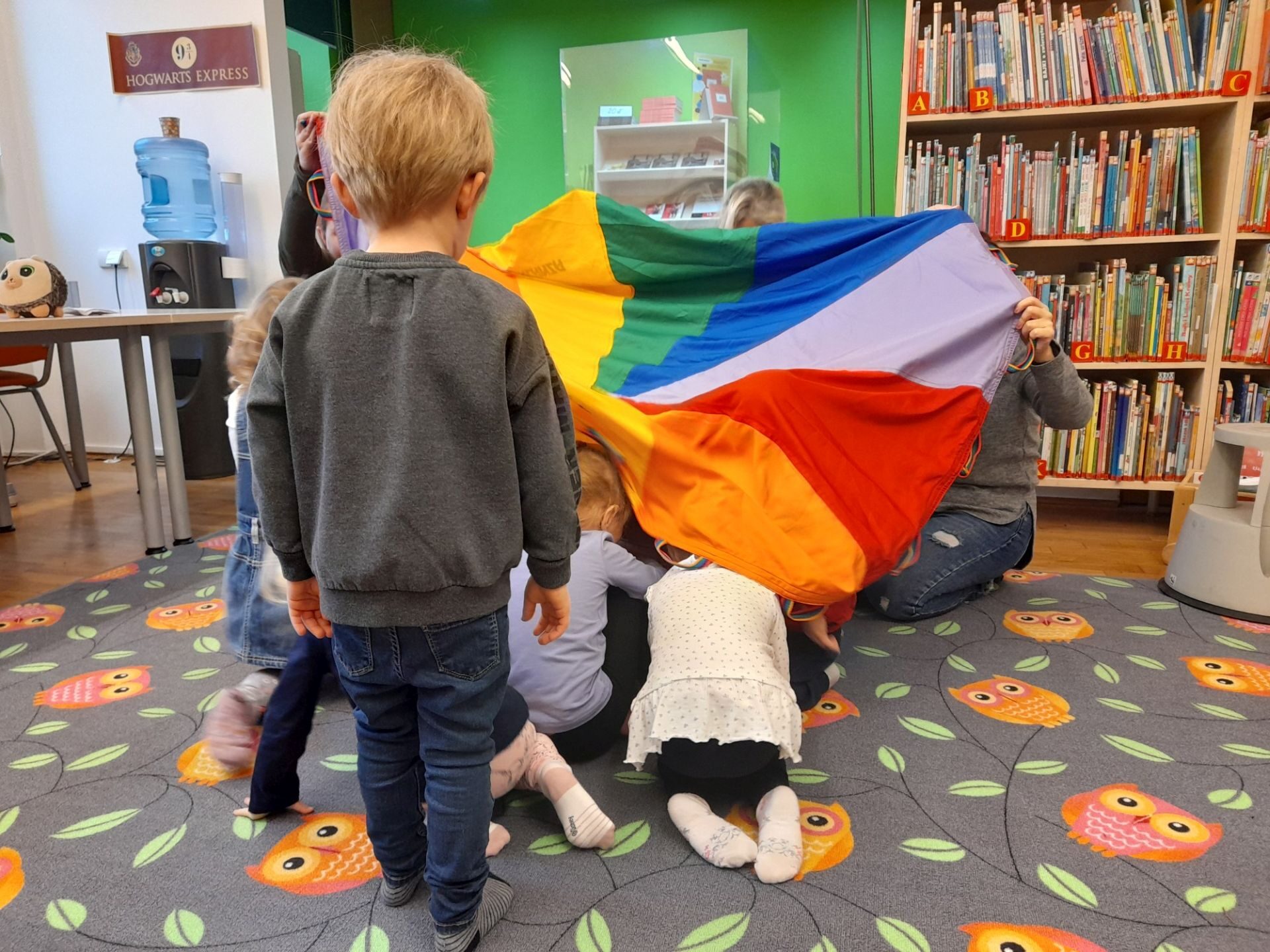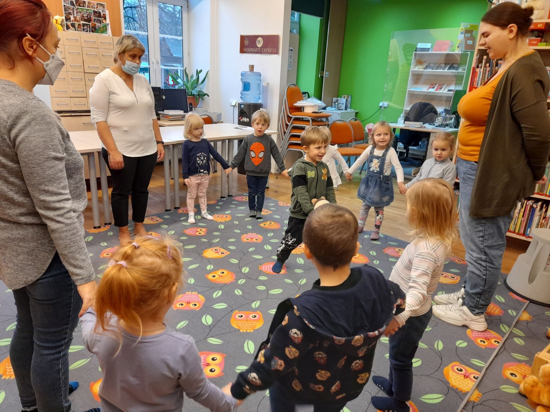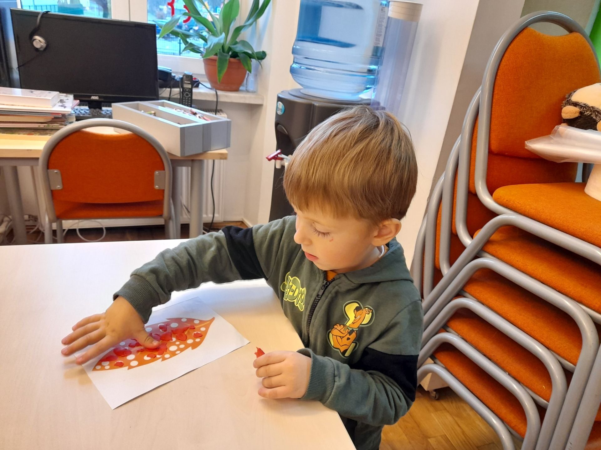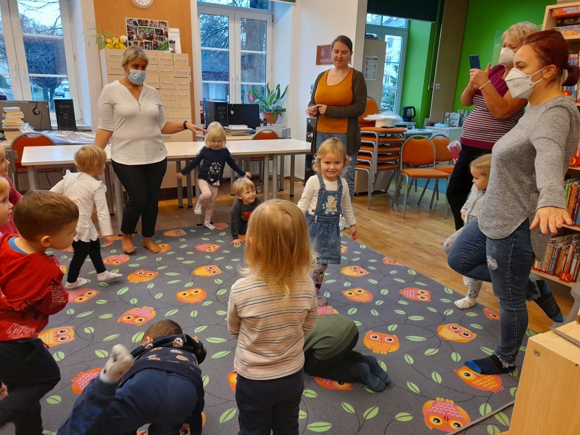 Dnia 19.11.2021 dzieci z grupy Kotki odwiedziły Bibliotekę w Józefowie. Panie bibliotekarki poprowadziły ciekawe zajęcia. Przedszkolaki wysłuchały opowiadania pt. „ Przygody małego Jeżyka”. Rozwiązywały zagadki o jesieni i zwierzętach leśnych. Bawiły się z chustą animacyjną – były to zabawy ruchowe o tematyce jesiennej. Zwieńczeniem zajęć było wylepianie plasteliną liścia i oglądanie książek dla dzieci.