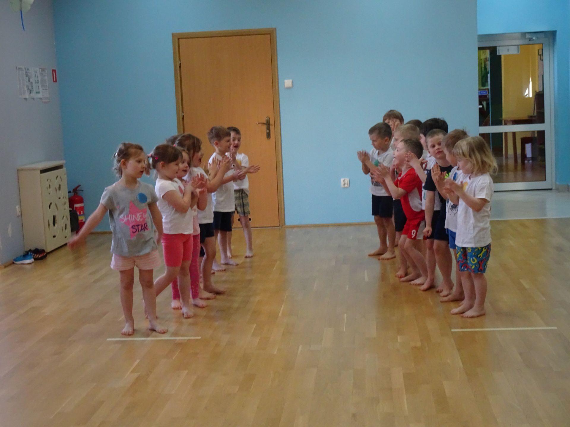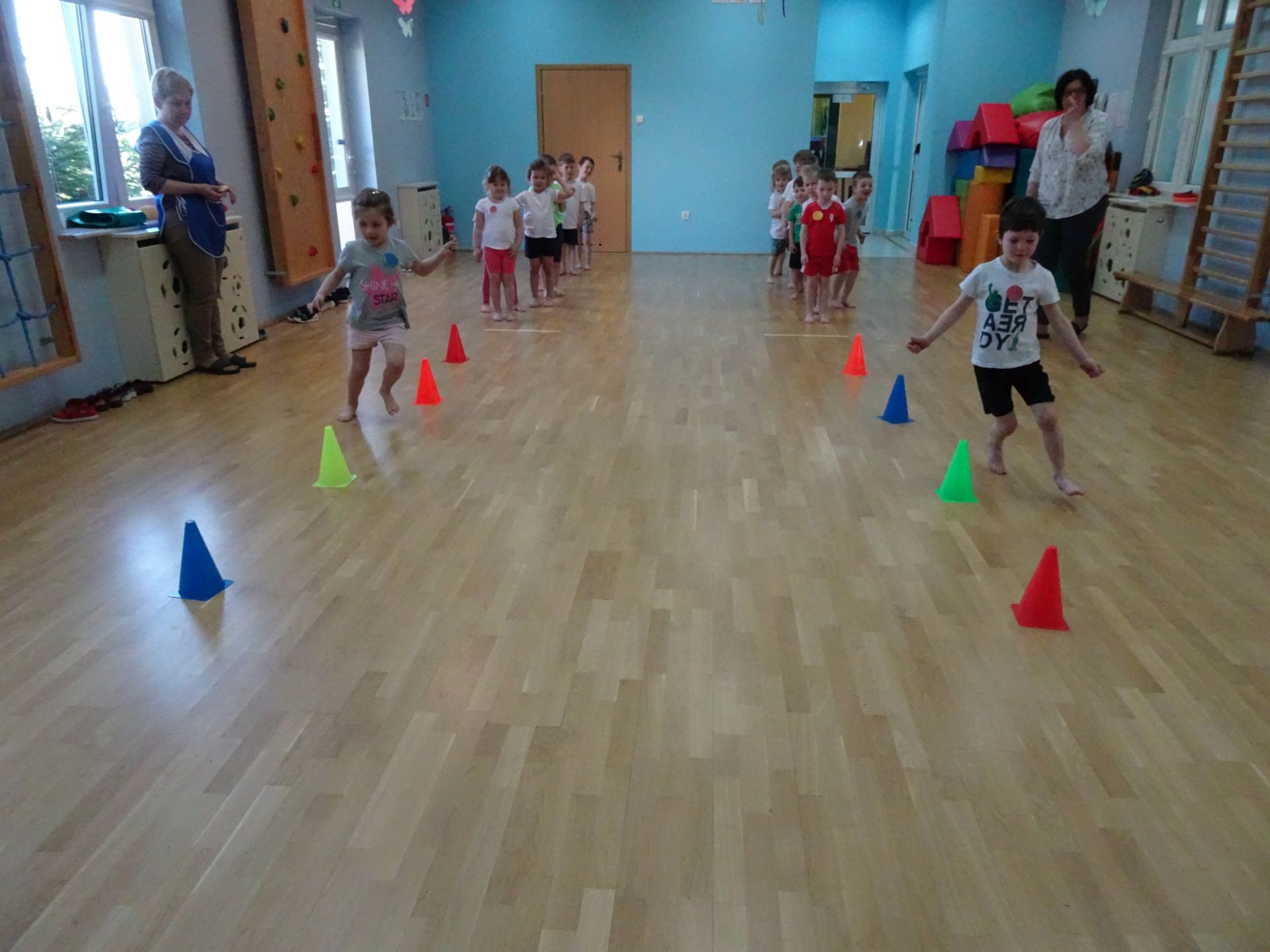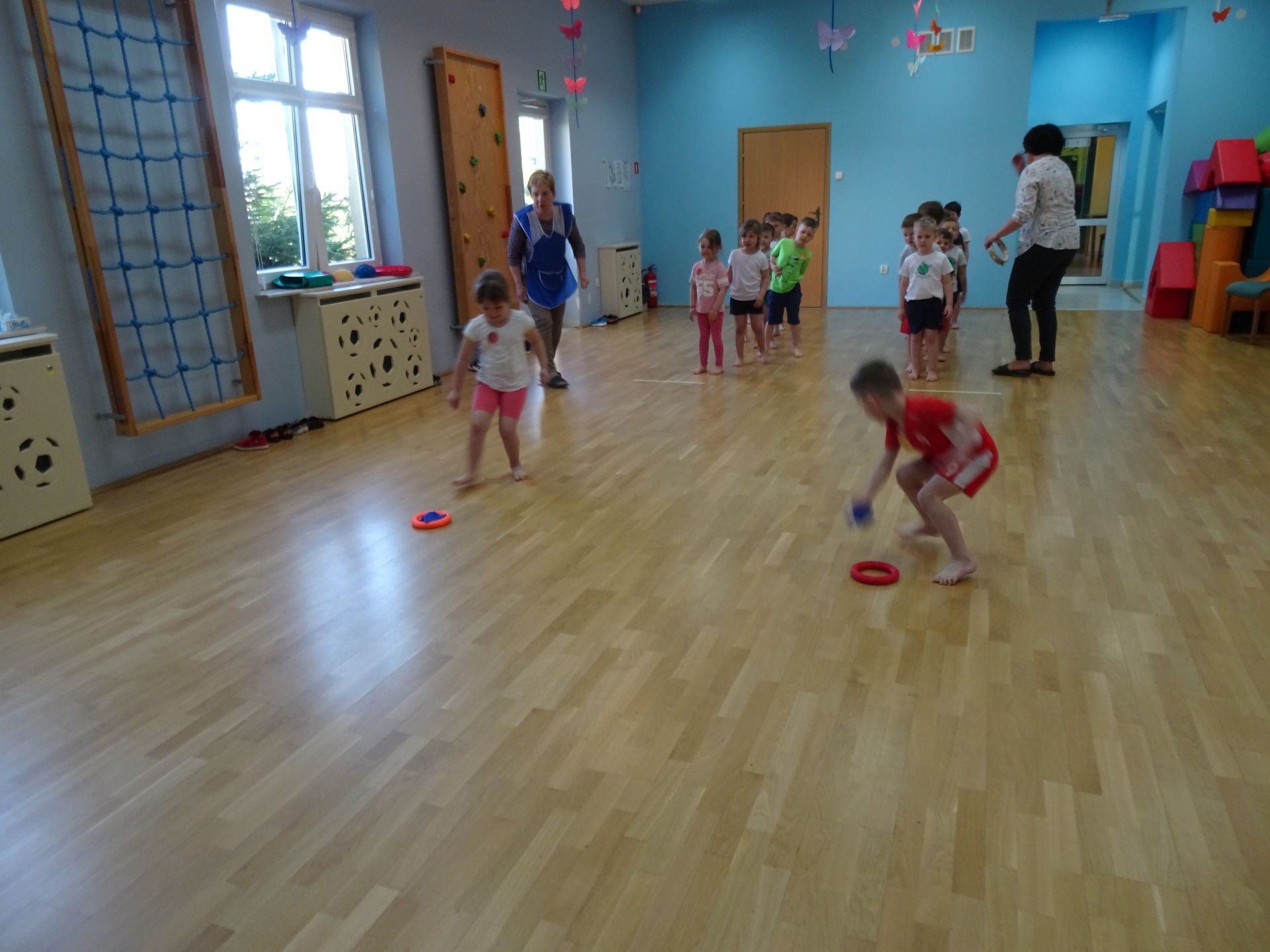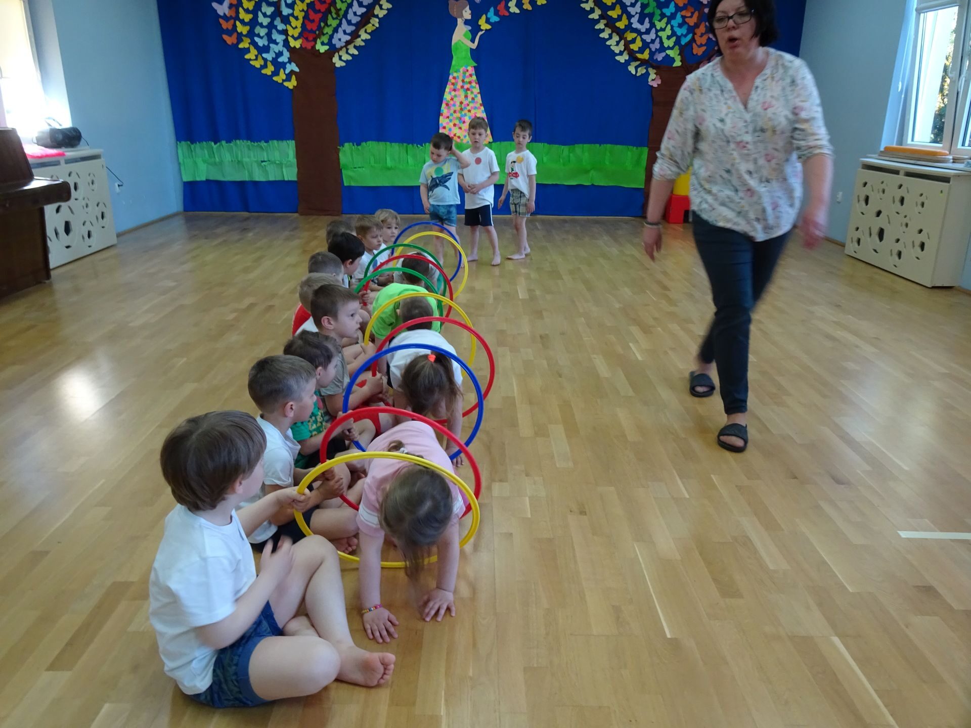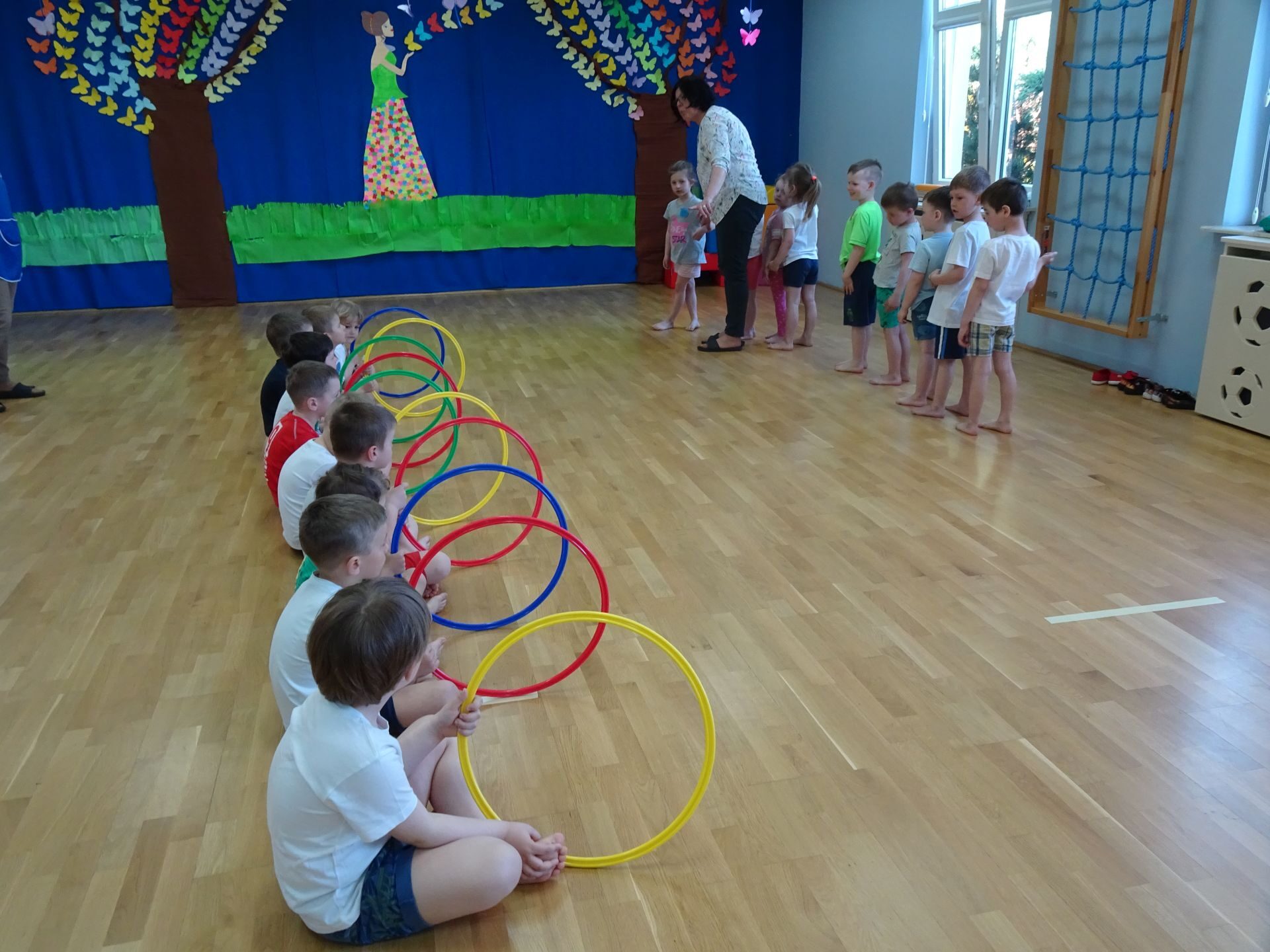 Dnia 10.05.2021r w grupie III,,Rybki ” odbyły się zajęcia ,,Wesoła gimnastyka”. Dzieci brały udział w zabawach ruchowych z wykorzystaniem różnorodnych przyborów gimnastycznych . W czasie gimnastyki rozwijały nie tylko sprawność ruchową ale także zwinność, szybkość , wytrzymałość , poczucie rytmu , umiejętność współdziałania w zespole, znajomość zasad warunkujących bezpieczeństwo w czasie zabawy. Na zakończenie zajęć każde dziecko otrzymało odznakę ,,Sportowiec na medal ”