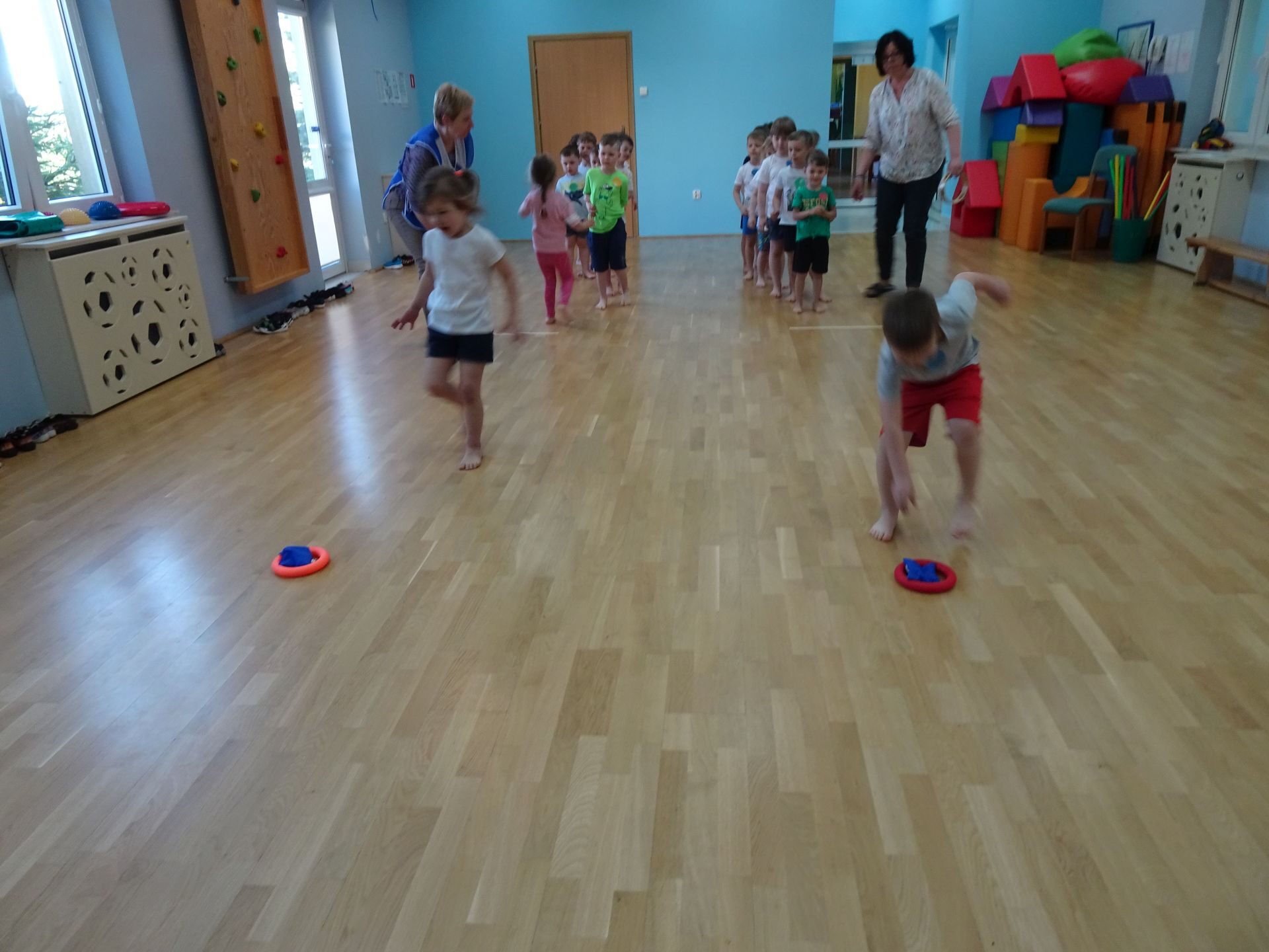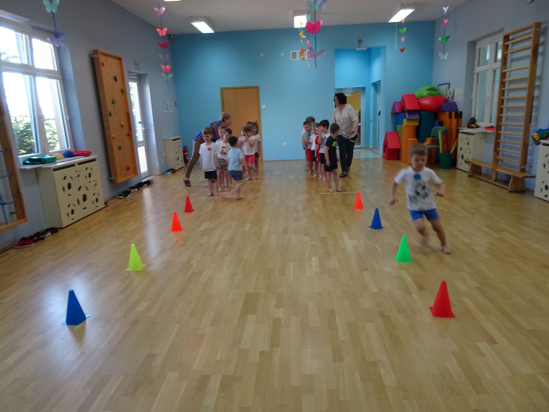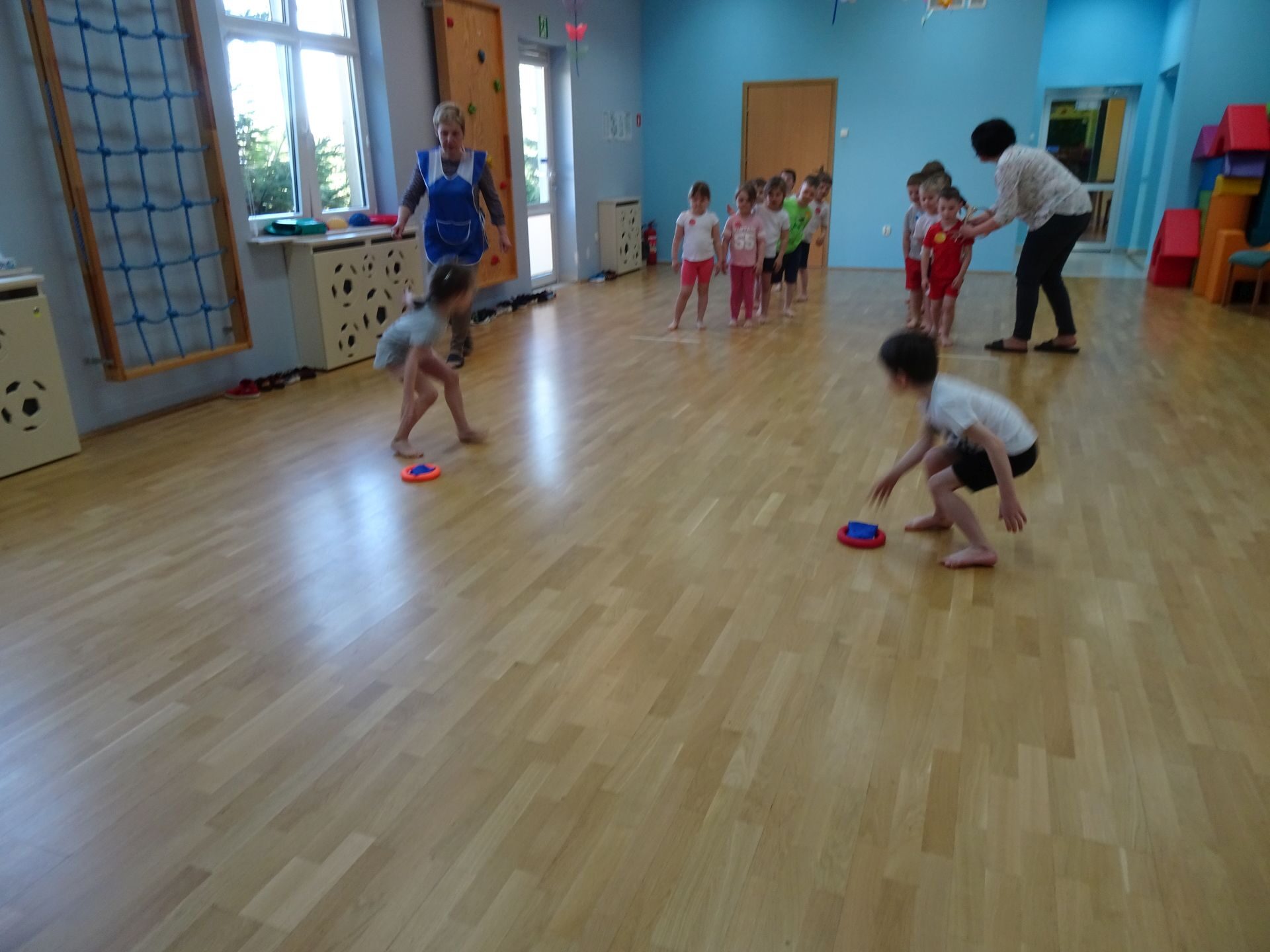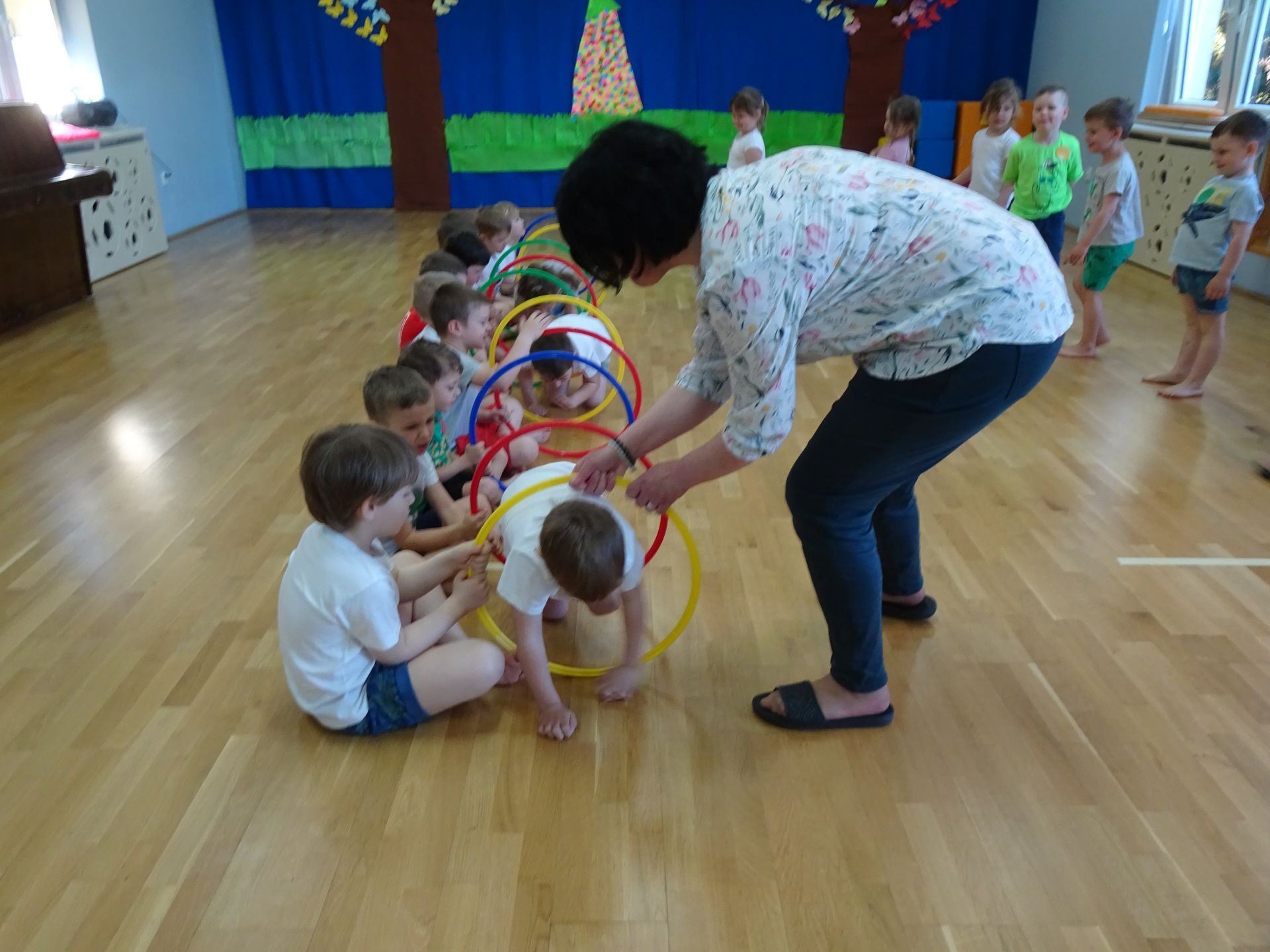 Dnia 10.05.2021r w grupie III,,Rybki ” odbyły się zajęcia ,,Wesoła gimnastyka”. Dzieci brały udział w zabawach ruchowych z wykorzystaniem różnorodnych przyborów gimnastycznych . W czasie gimnastyki rozwijały nie tylko sprawność ruchową ale także zwinność, szybkość , wytrzymałość , poczucie rytmu , umiejętność współdziałania w zespole, znajomość zasad warunkujących bezpieczeństwo w czasie zabawy. Na zakończenie zajęć każde dziecko otrzymało odznakę ,,Sportowiec na medal ”