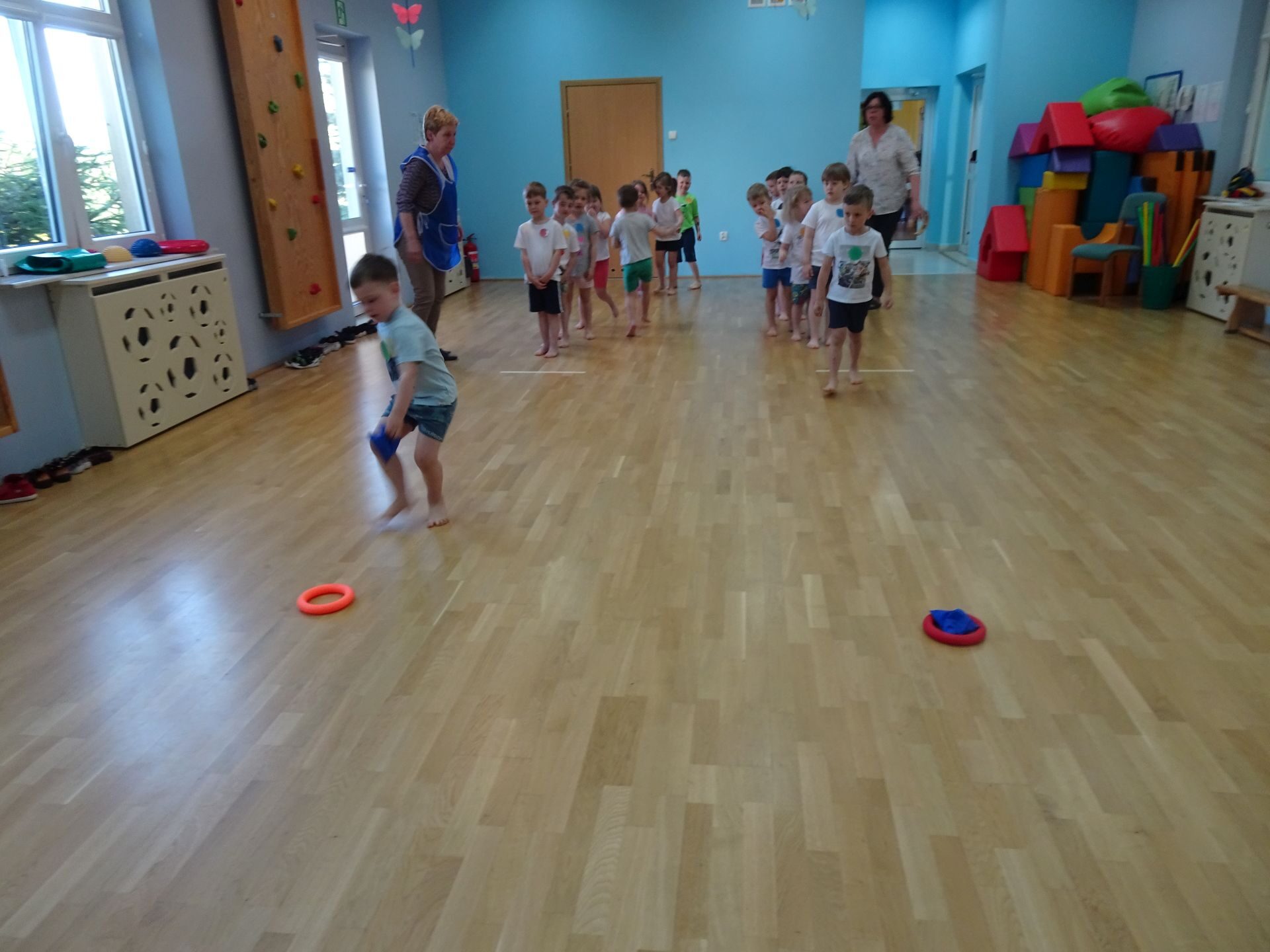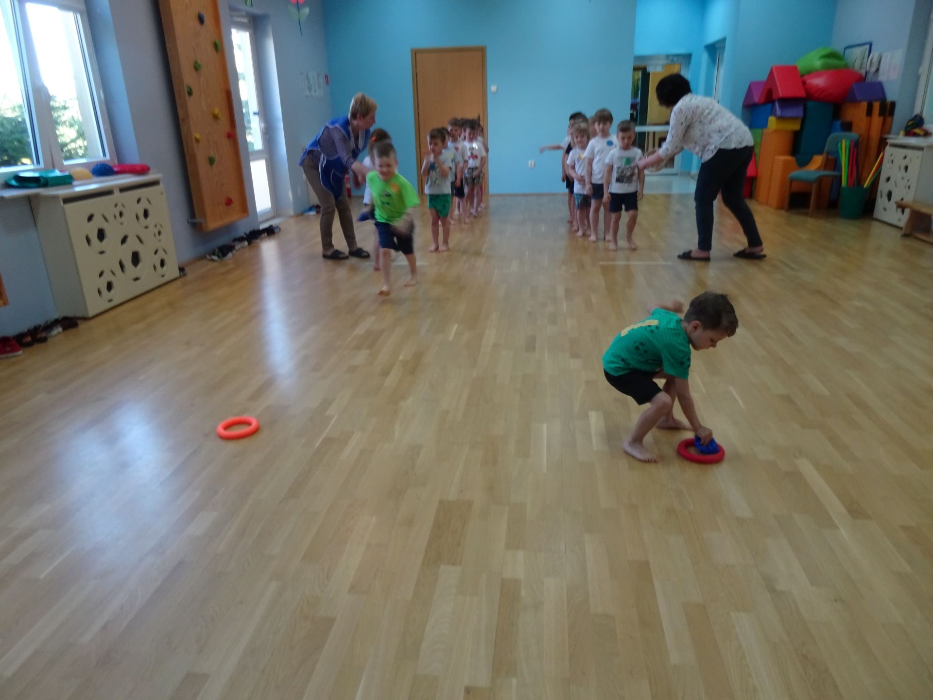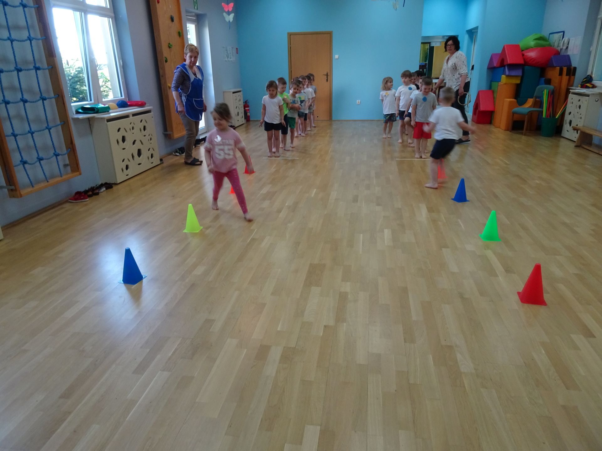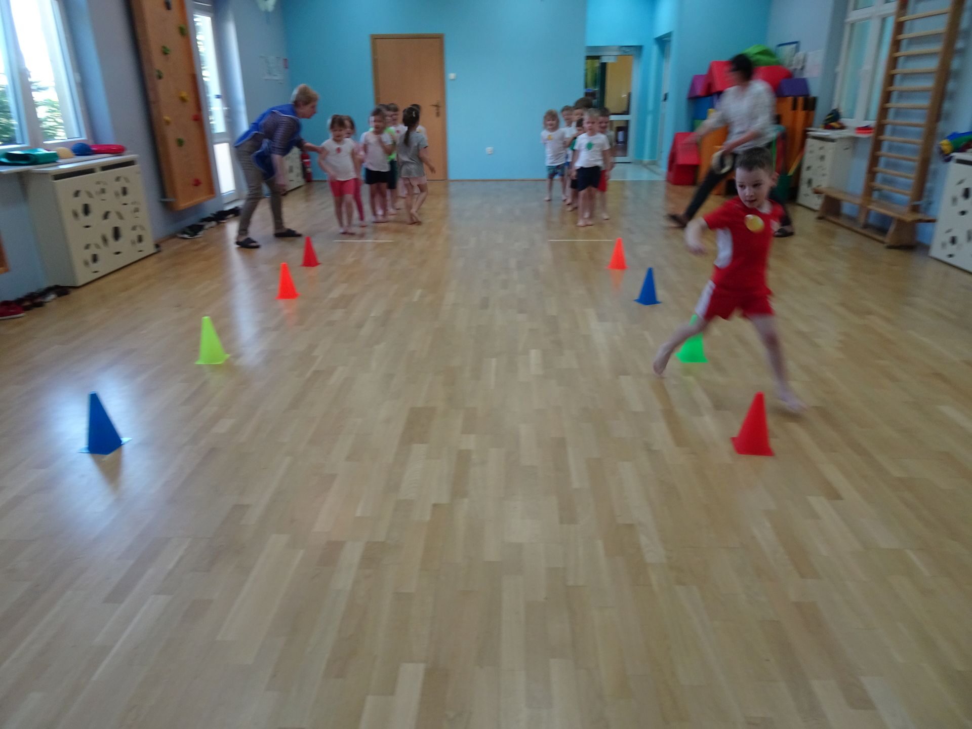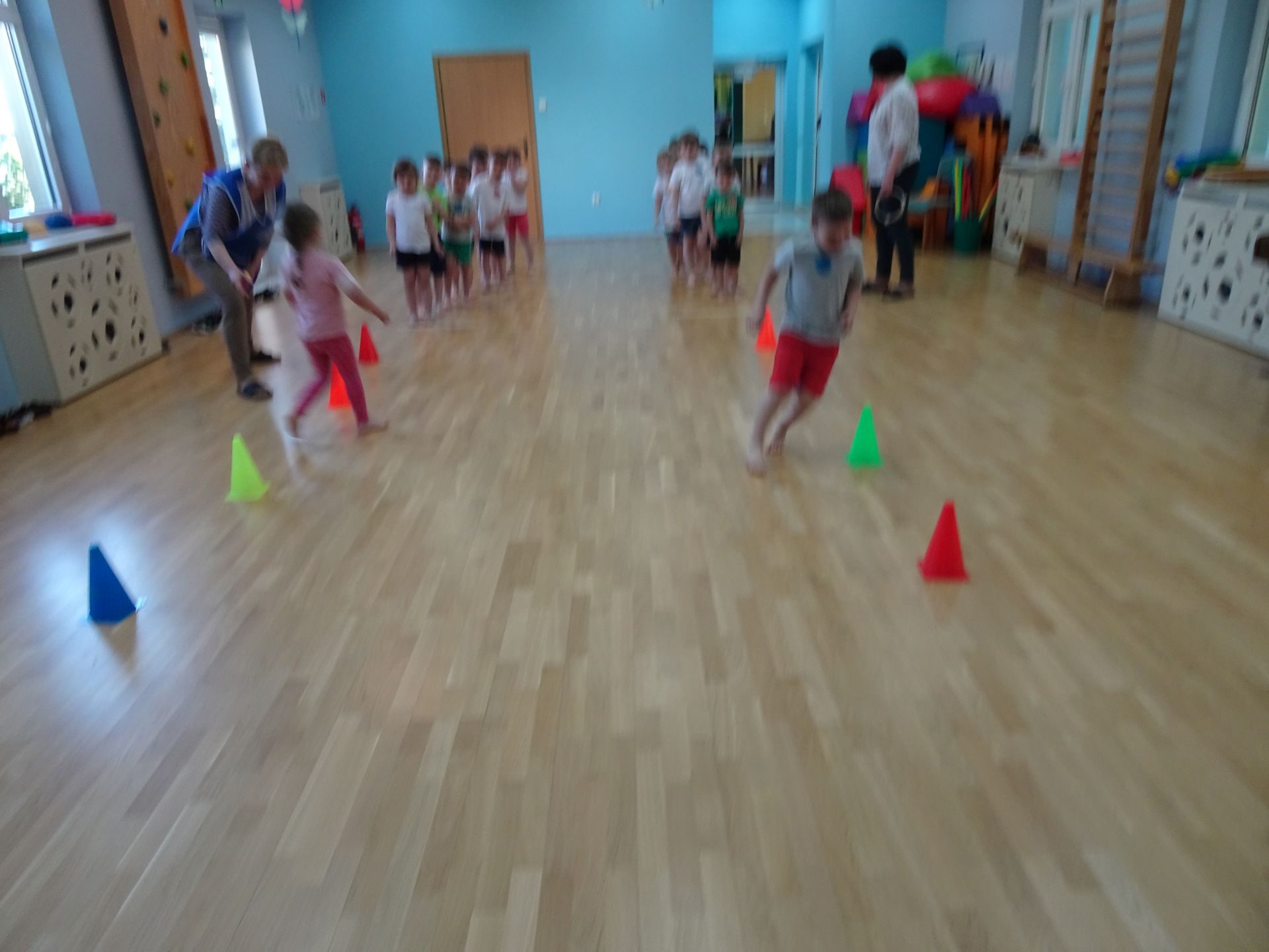 Dnia 10.05.2021r w grupie III,,Rybki ” odbyły się zajęcia ,,Wesoła gimnastyka”. Dzieci brały udział w zabawach ruchowych z wykorzystaniem różnorodnych przyborów gimnastycznych . W czasie gimnastyki rozwijały nie tylko sprawność ruchową ale także zwinność, szybkość , wytrzymałość , poczucie rytmu , umiejętność współdziałania w zespole, znajomość zasad warunkujących bezpieczeństwo w czasie zabawy. Na zakończenie zajęć każde dziecko otrzymało odznakę ,,Sportowiec na medal ”