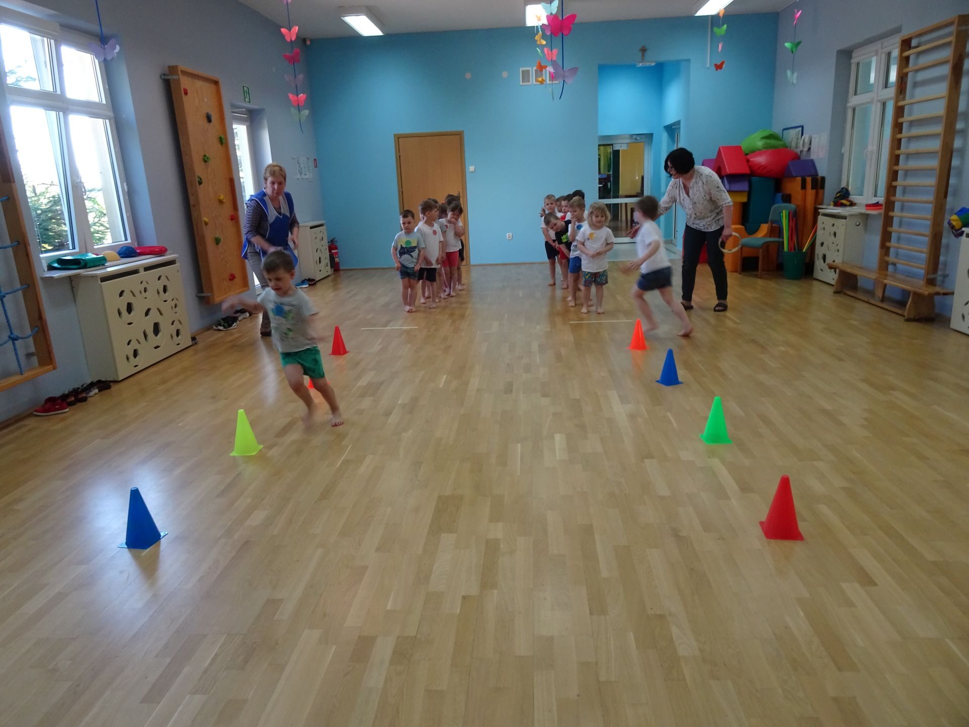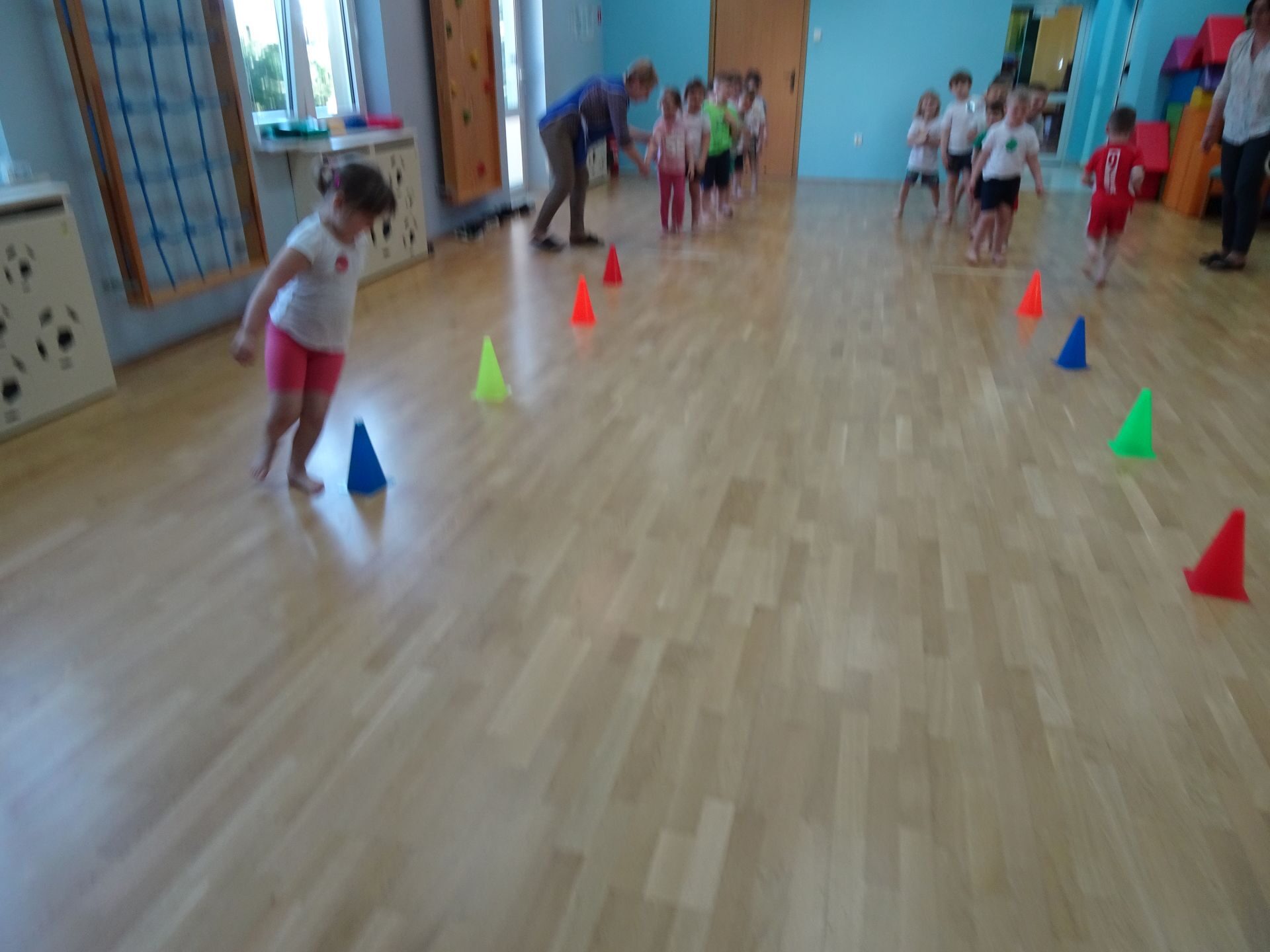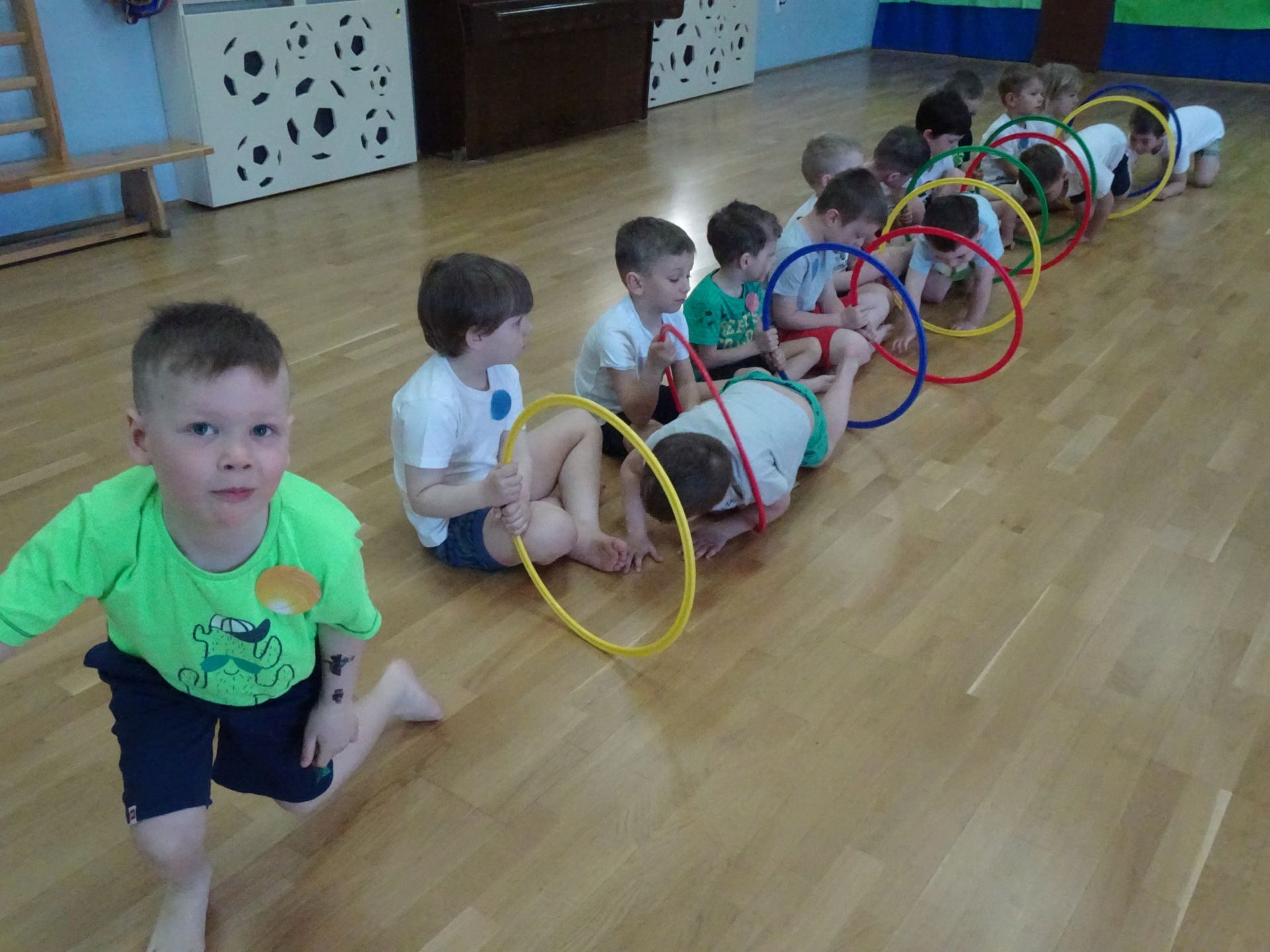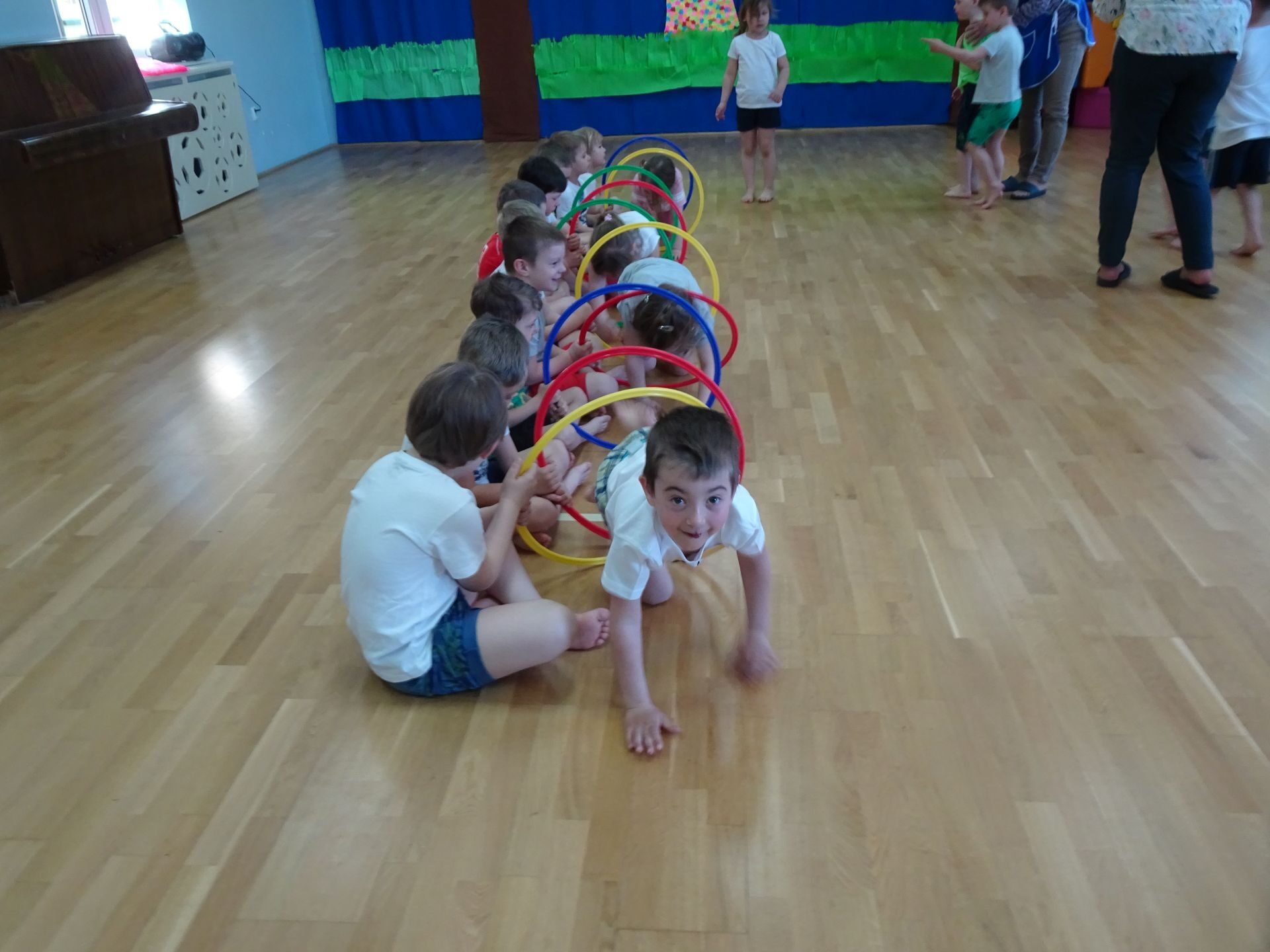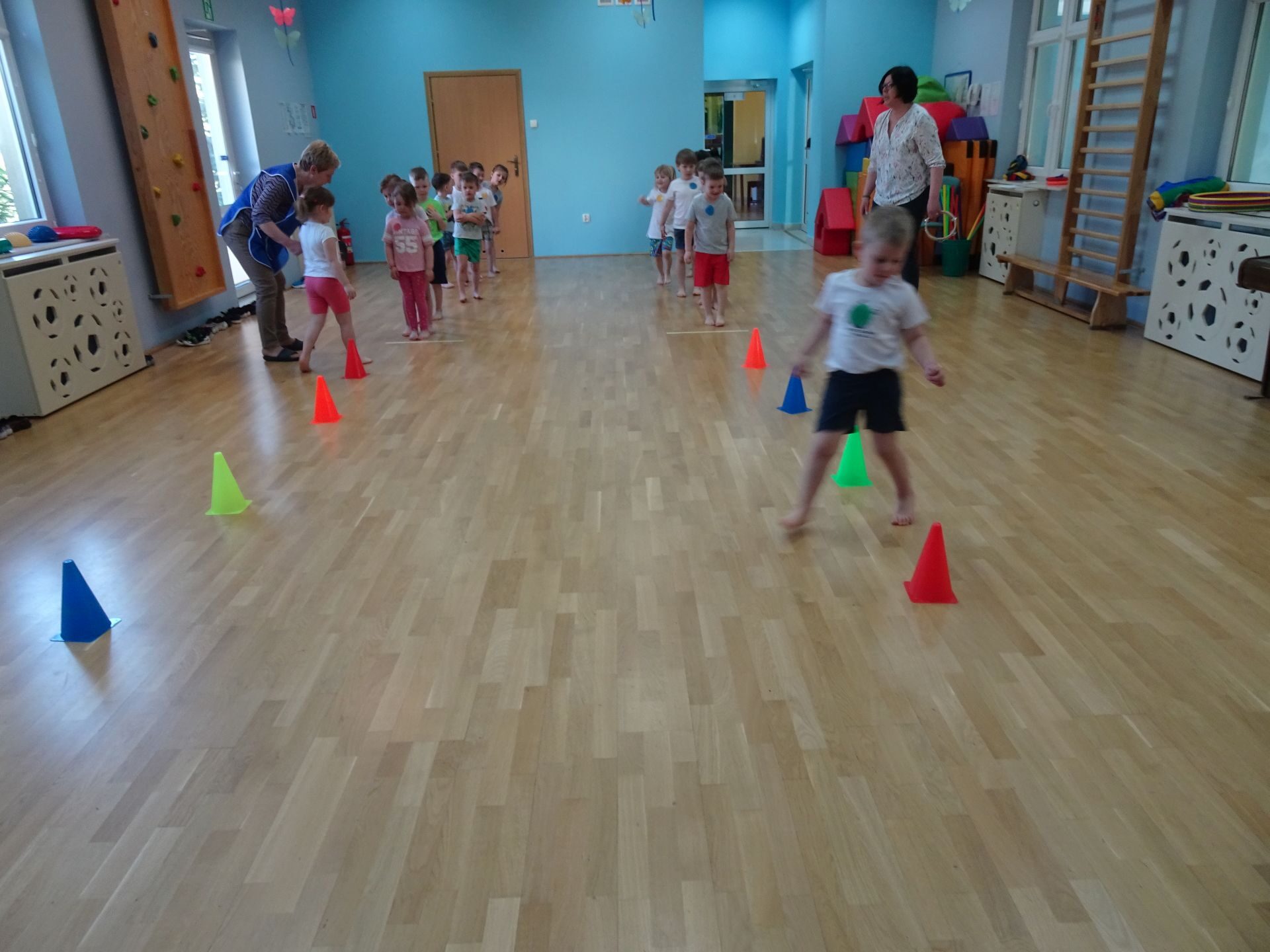 Dnia 10.05.2021r w grupie III,,Rybki ” odbyły się zajęcia ,,Wesoła gimnastyka”. Dzieci brały udział w zabawach ruchowych z wykorzystaniem różnorodnych przyborów gimnastycznych . W czasie gimnastyki rozwijały nie tylko sprawność ruchową ale także zwinność, szybkość , wytrzymałość , poczucie rytmu , umiejętność współdziałania w zespole, znajomość zasad warunkujących bezpieczeństwo w czasie zabawy. Na zakończenie zajęć każde dziecko otrzymało odznakę ,,Sportowiec na medal ”