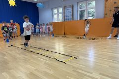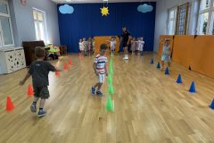 Od października w naszym przedszkolu odbywają się zajęcia sportowe prowadzone przez trenera FC Płochocin Damiana Dymkowskiego. Zajęcia ogólnorozwojowe charakteryzują się dużą dynamiką zmian form ruchowych, bazując na podstawowych ćwiczeniach gimnastycznych, zabawach ruchowych, elementach lekkoatletyki, dostosowanych do wieku uczestników i temperamentu dzieci, z wykorzystaniem wielorakich narzędzi sportowych i animacyjnych. Udział w zajęciach umożliwił dzieciom kształtowanie prawidłowej postawy przez zabawę, zwiększanie sprawności fizycznej i koordynacji ruchowej, kształtowanie zręczności i refleksu w tym rozwijanie naturalnych czynności ruchowych (np. skoki, biegi, przeskoki, rzuty itp.). Podczas zajęć dzieci miały również okazję zagrać w piłkę nożną.