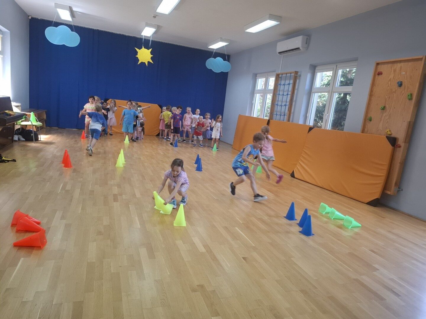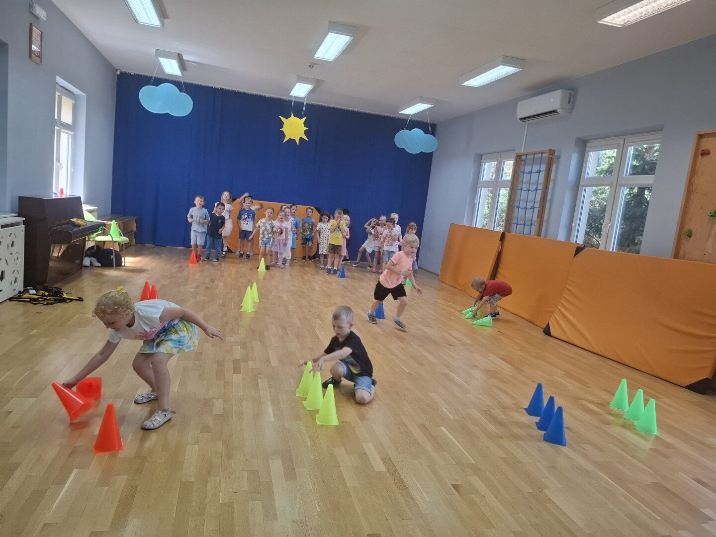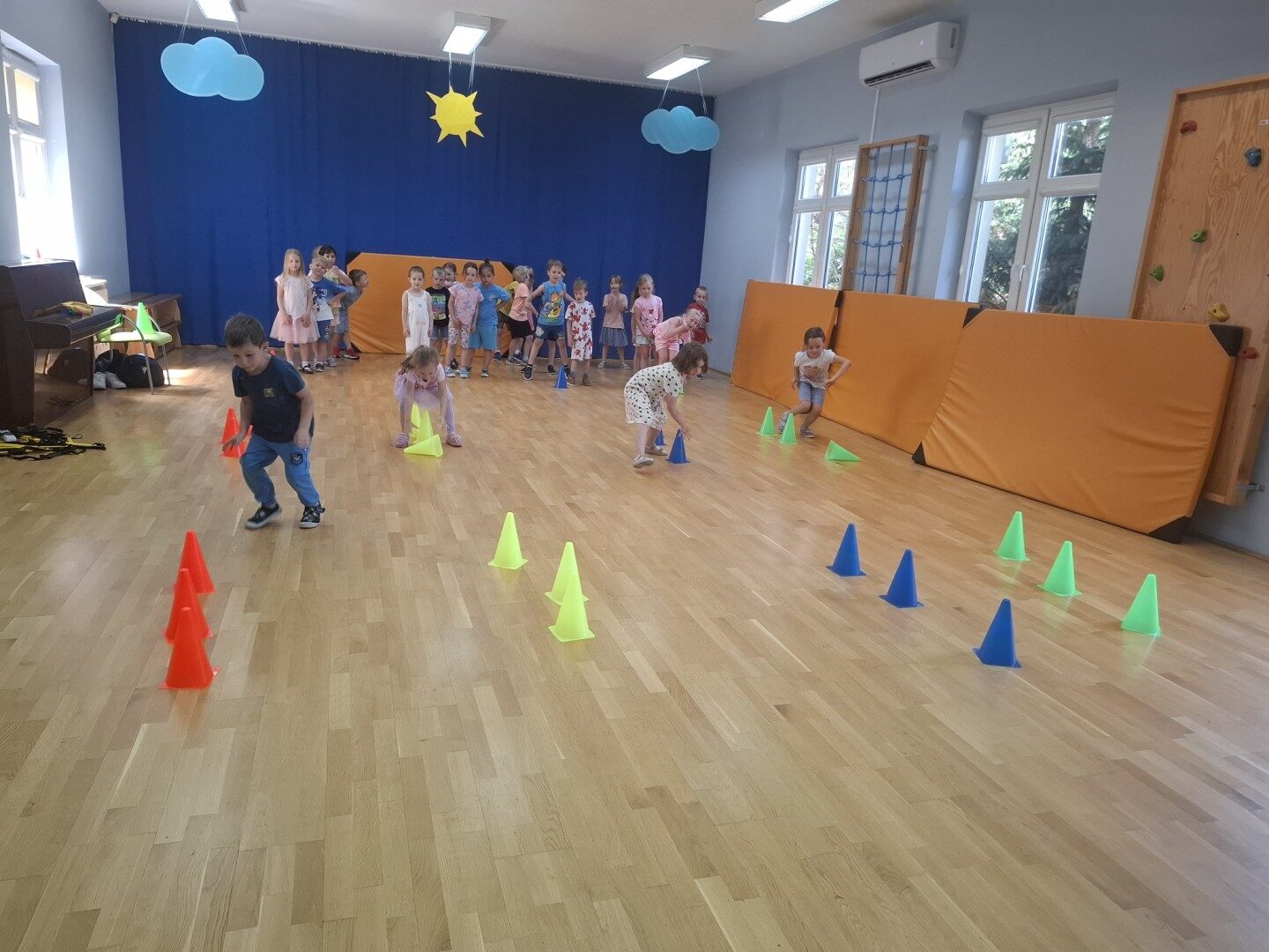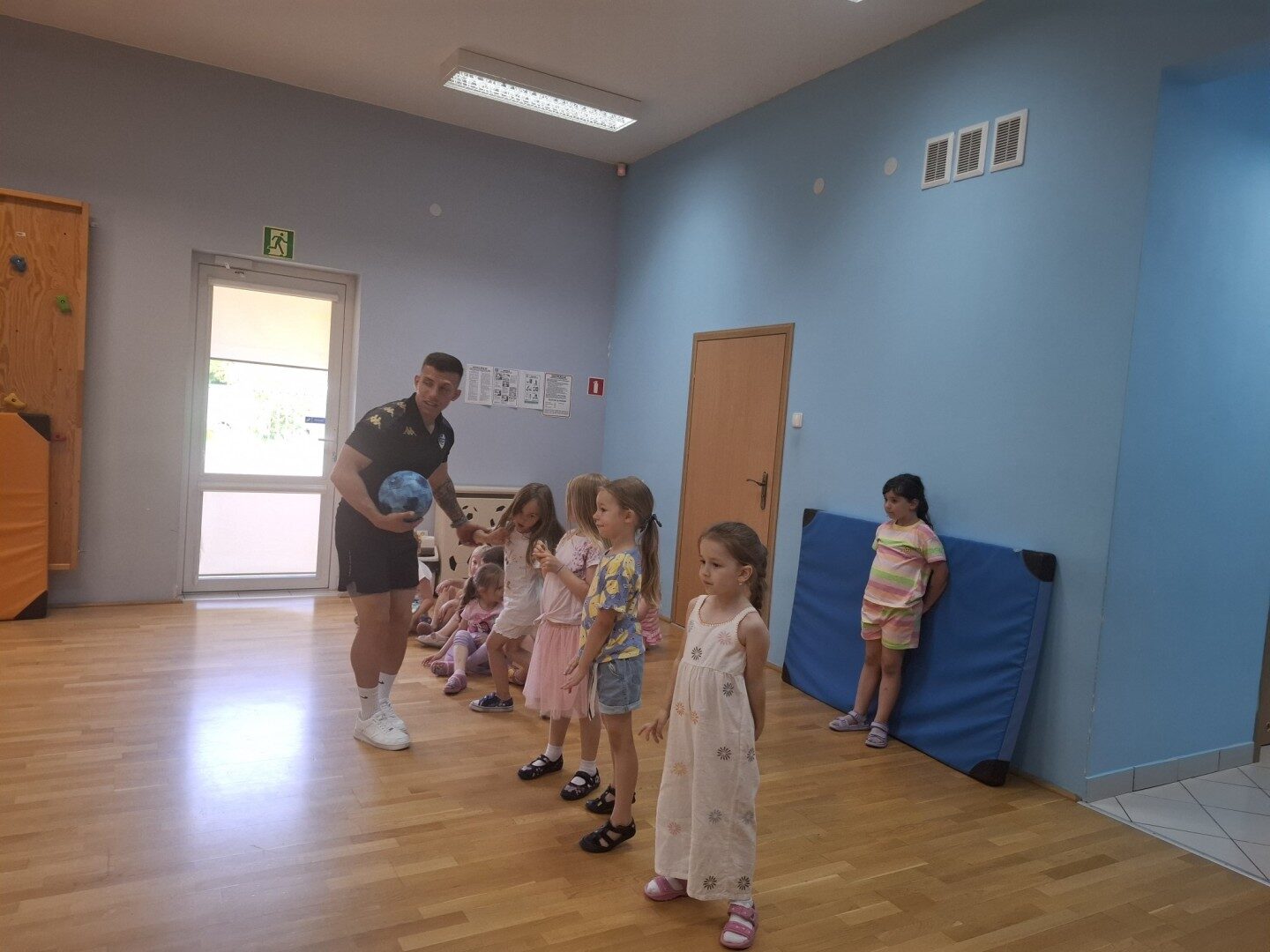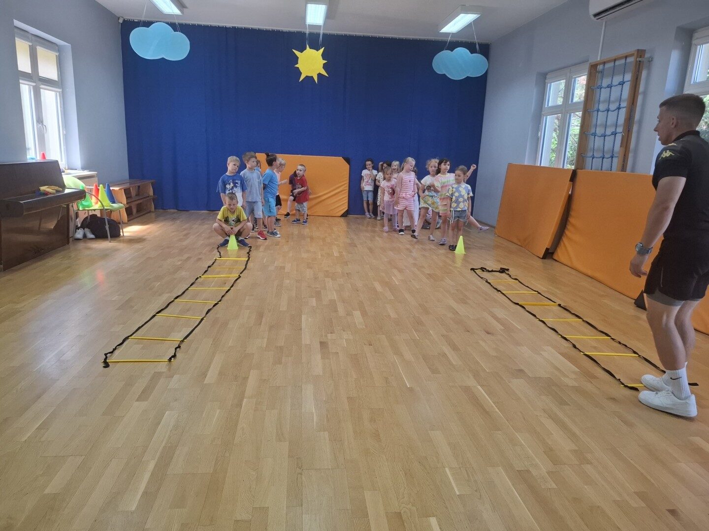Od października w naszym przedszkolu odbywają się zajęcia sportowe prowadzone przez trenera FC Płochocin Damiana Dymkowskiego. Zajęcia ogólnorozwojowe charakteryzują się dużą dynamiką zmian form ruchowych, bazując na podstawowych ćwiczeniach gimnastycznych, zabawach ruchowych, elementach lekkoatletyki, dostosowanych do wieku uczestników i temperamentu dzieci, z wykorzystaniem wielorakich narzędzi sportowych i animacyjnych. Udział w zajęciach umożliwił dzieciom kształtowanie prawidłowej postawy przez zabawę, zwiększanie sprawności fizycznej i koordynacji ruchowej, kształtowanie zręczności i refleksu w tym rozwijanie naturalnych czynności ruchowych (np. skoki, biegi, przeskoki, rzuty itp.). Podczas zajęć dzieci miały również okazję zagrać w piłkę nożną.
