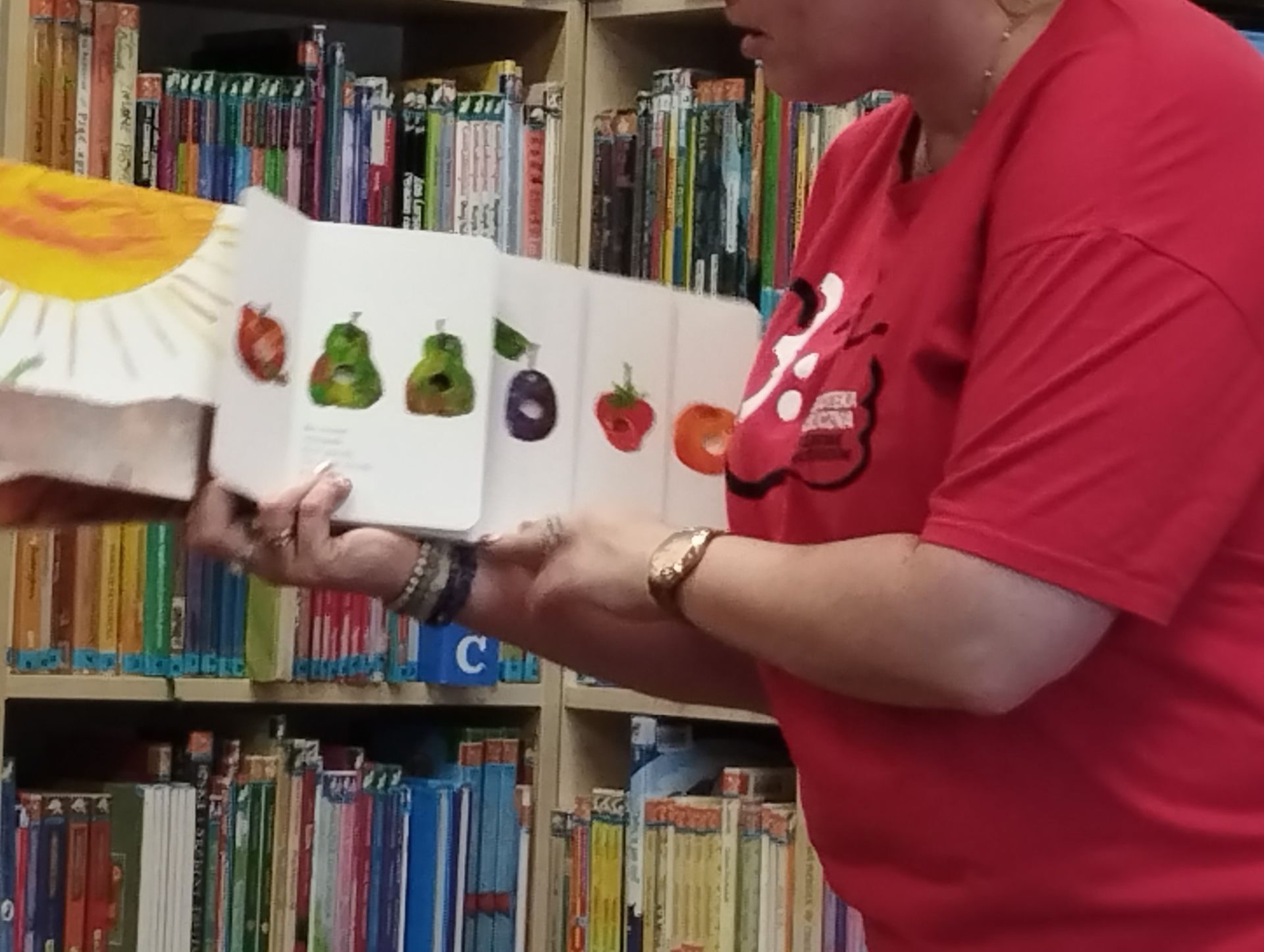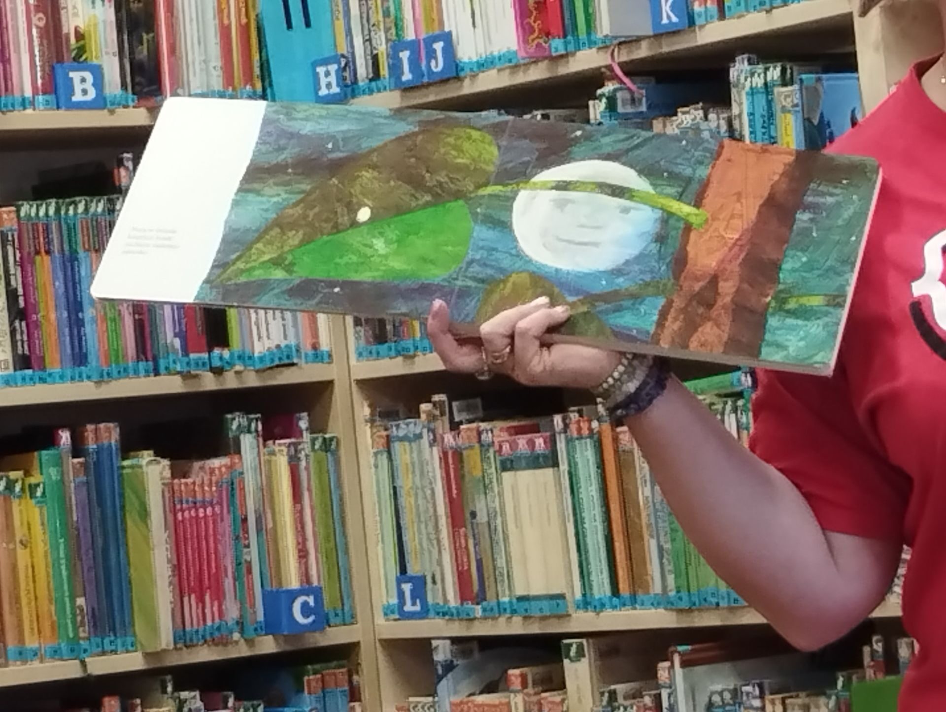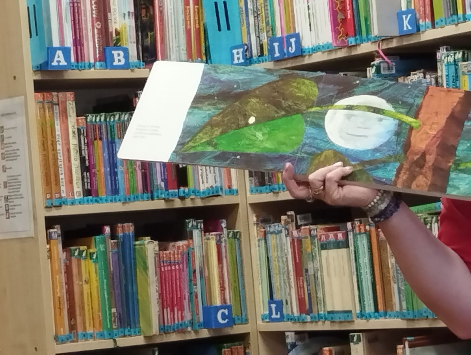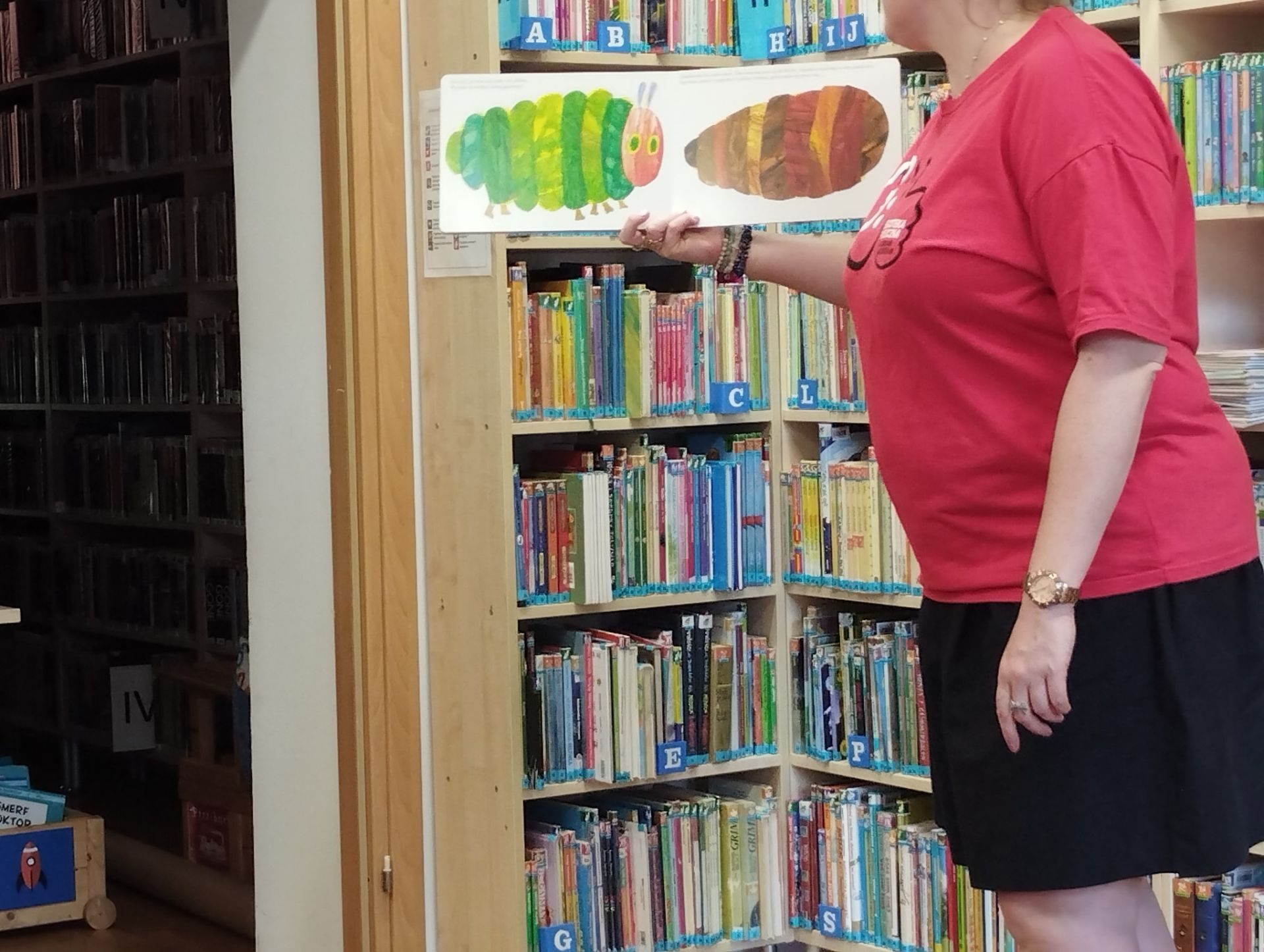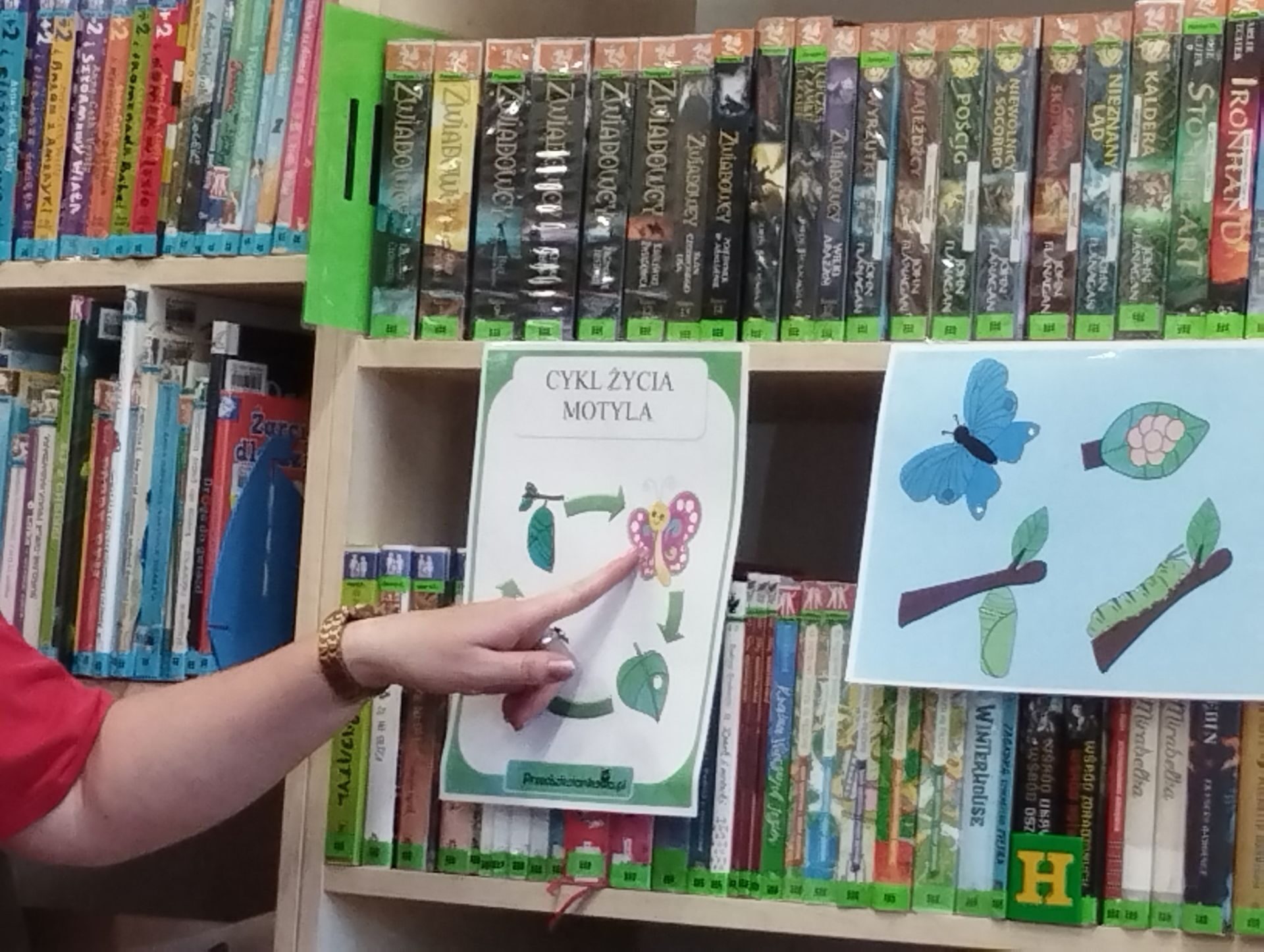 Dnia 17 maja w dzieci z grupy I wzięły udział w zajęciach w Bibliotece Publicznej w Józefowie. Pani oprowadziła przeczytała dzieciom opowiadanie pt.: “Bardzo głodna gąsienica” E. Carle, następnie dzieci wykonały wspólnie wielką gąsienicę.