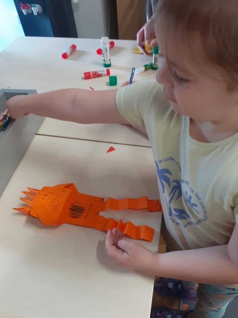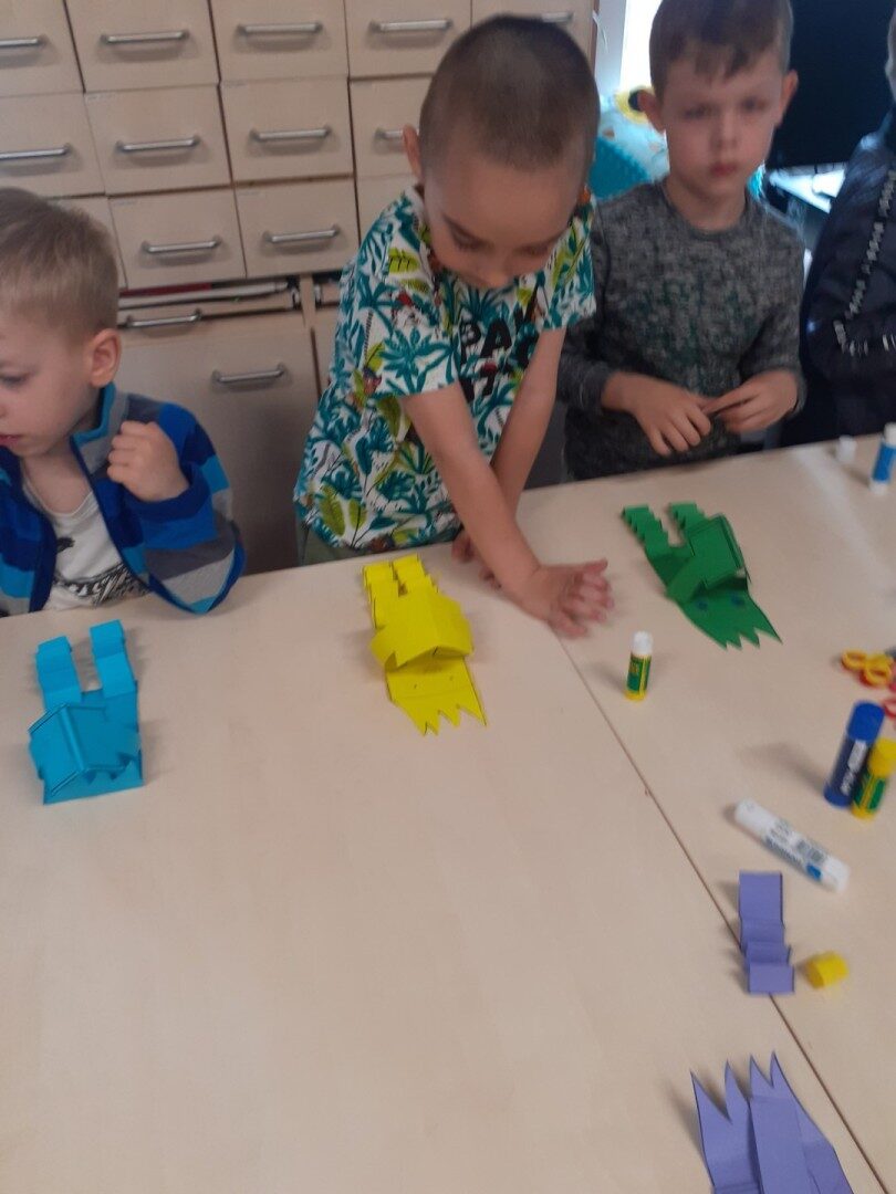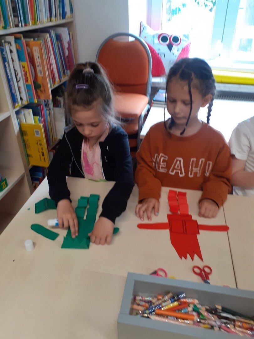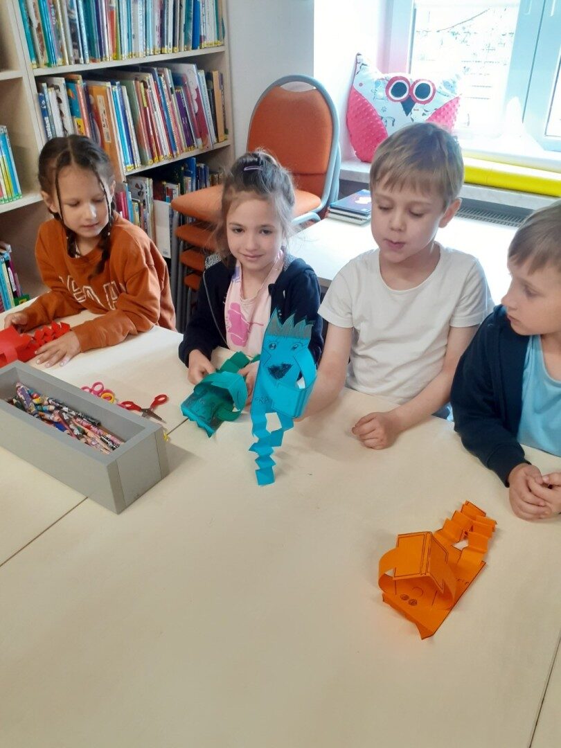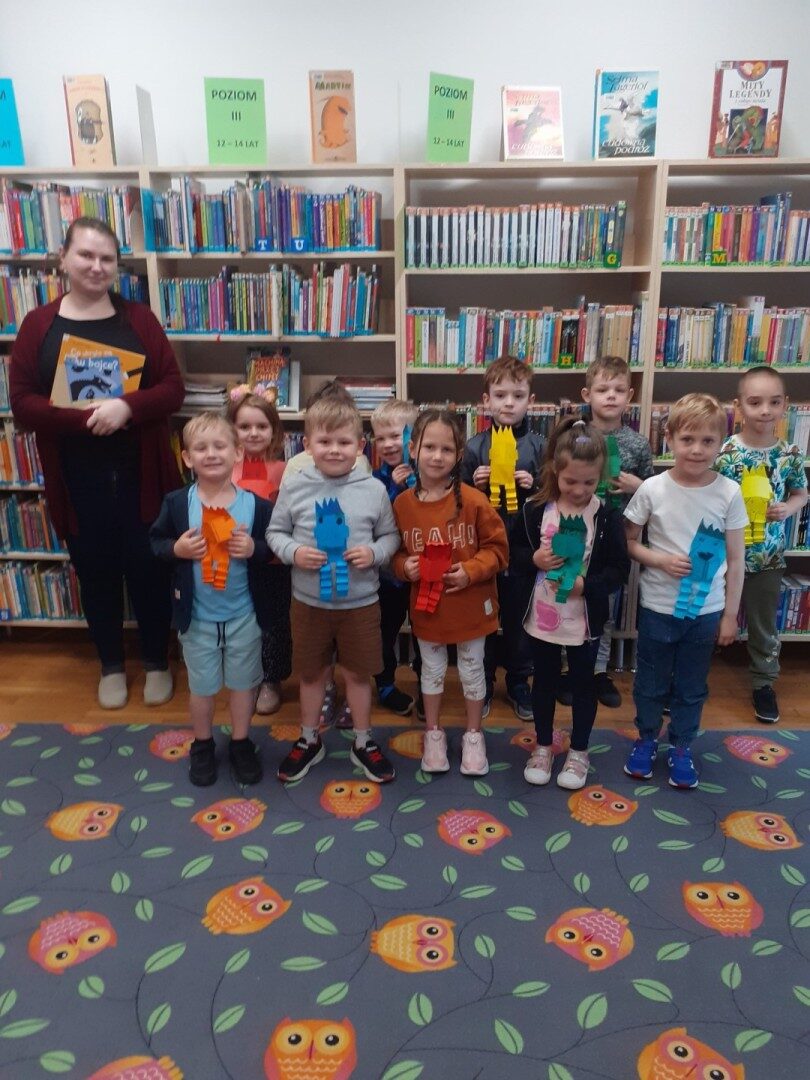 Dnia 22.04.2025r. nasza grupa udała się do Biblioteki Publicznej w Józefowie. W czasie zajęć słuchaliśmy i oglądaliśmy książkę pt.: ” Co ukryło się w bajce? Odkrycia z latarką”. Wysłuchaliśmy różnych ciekawostek o książkach. Dowiedzieliśmy się, jakie są etapy powstawania książki. Na zakończenie wyjaśniliśmy pojęcie “mól książkowy” i wykonaliśmy mola z papieru. To były bardzo ciekawe zajęcia.