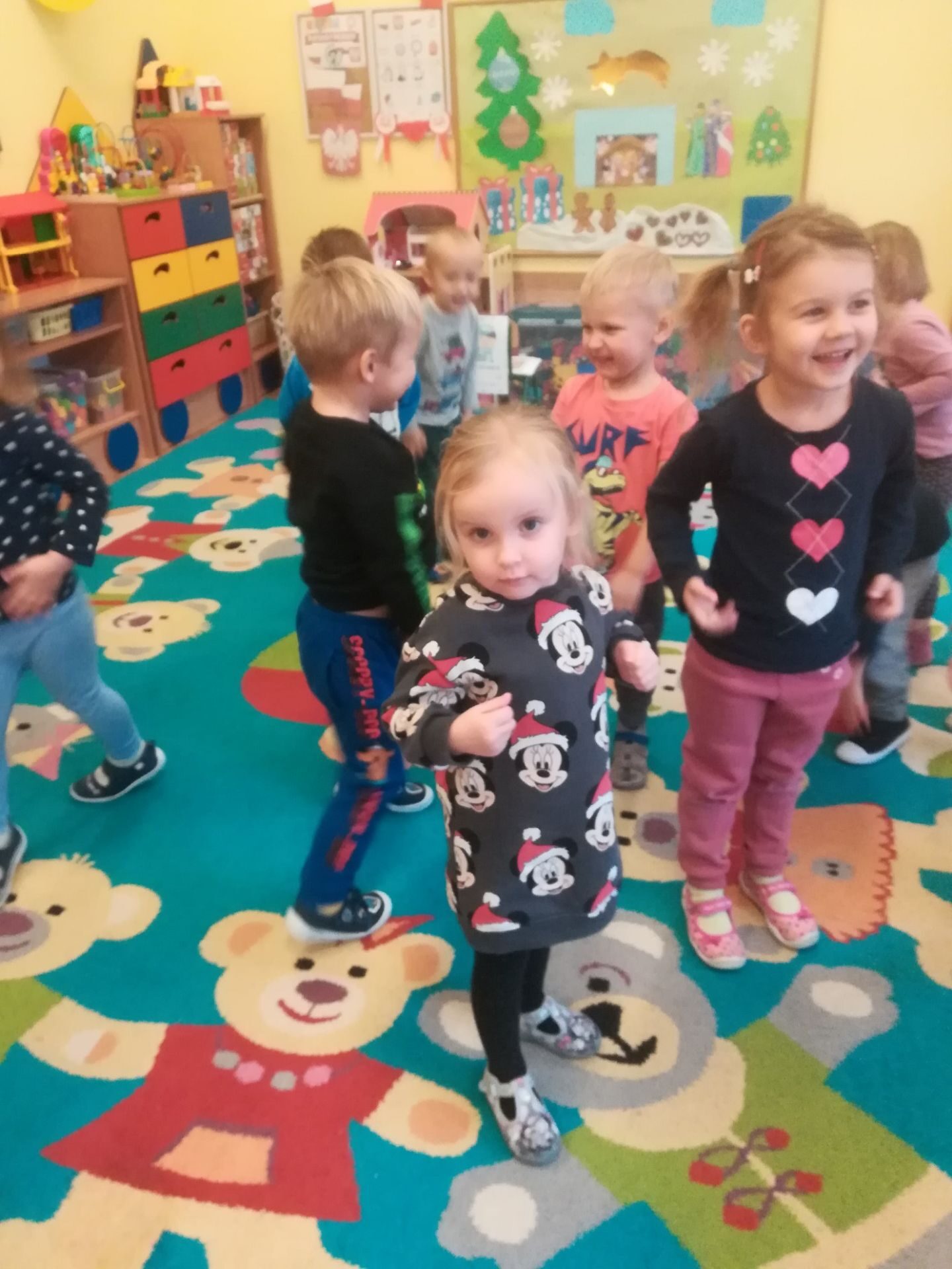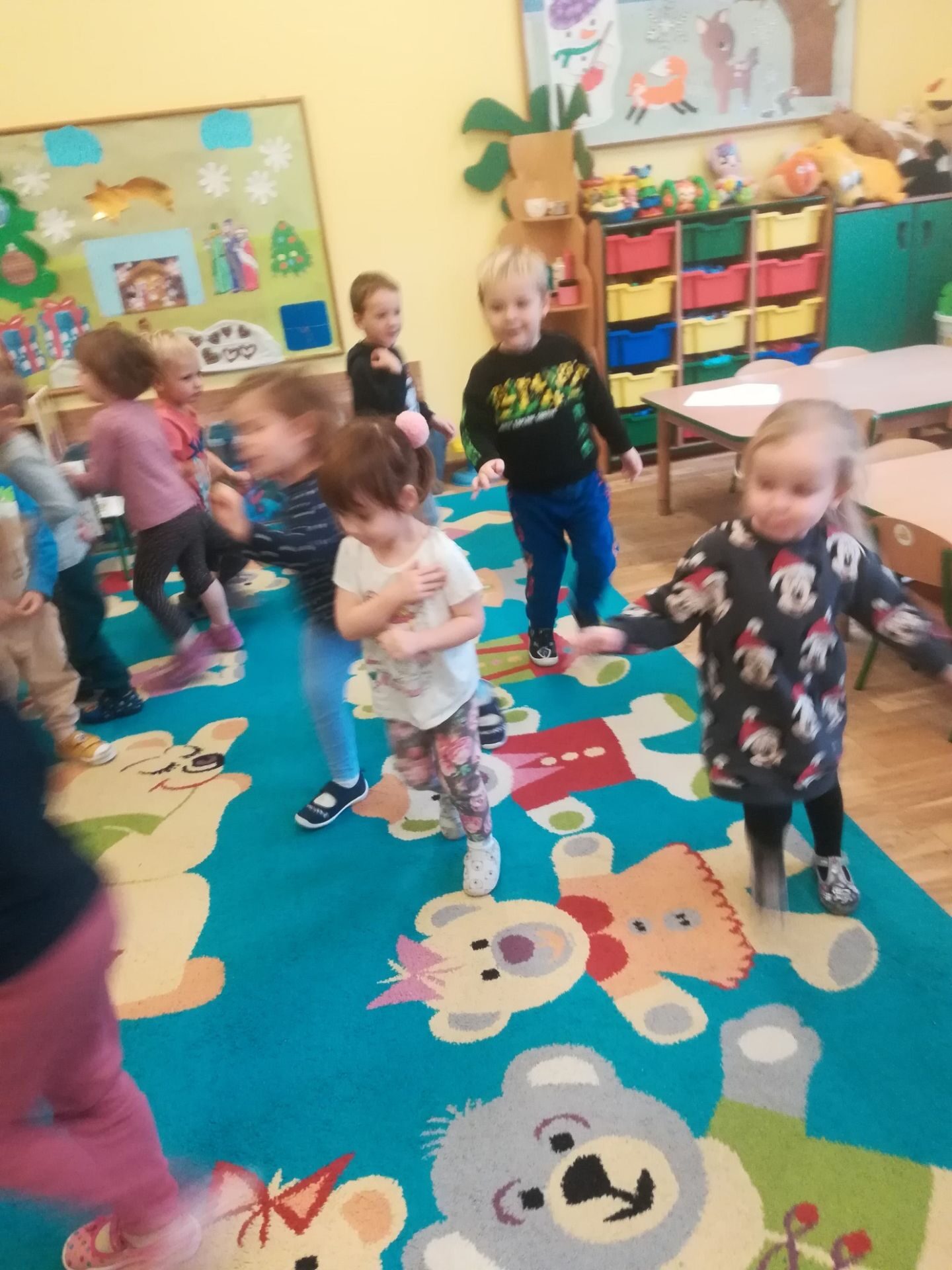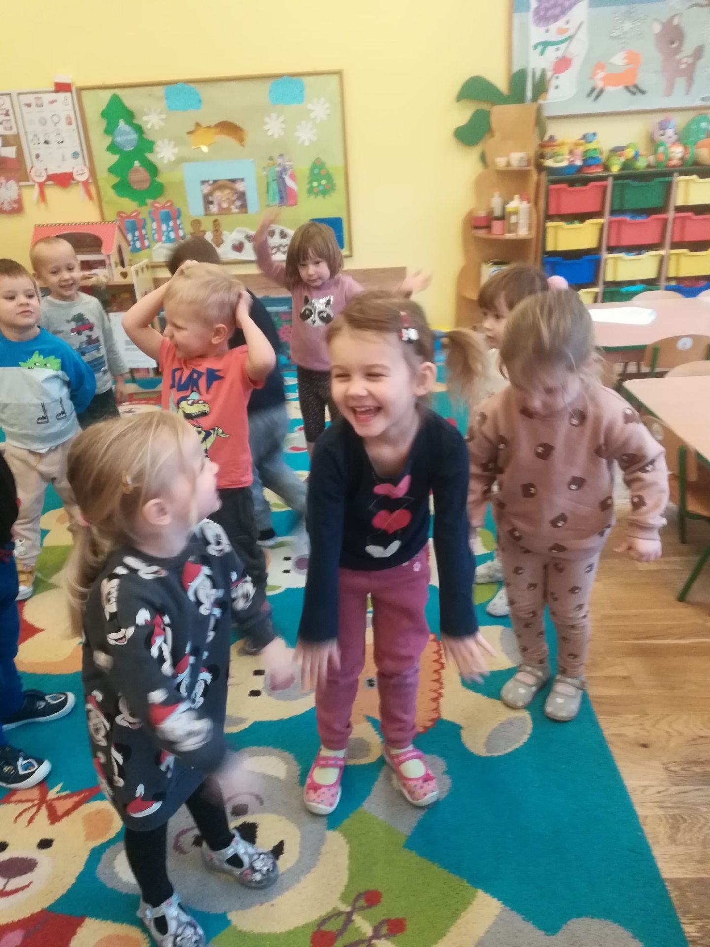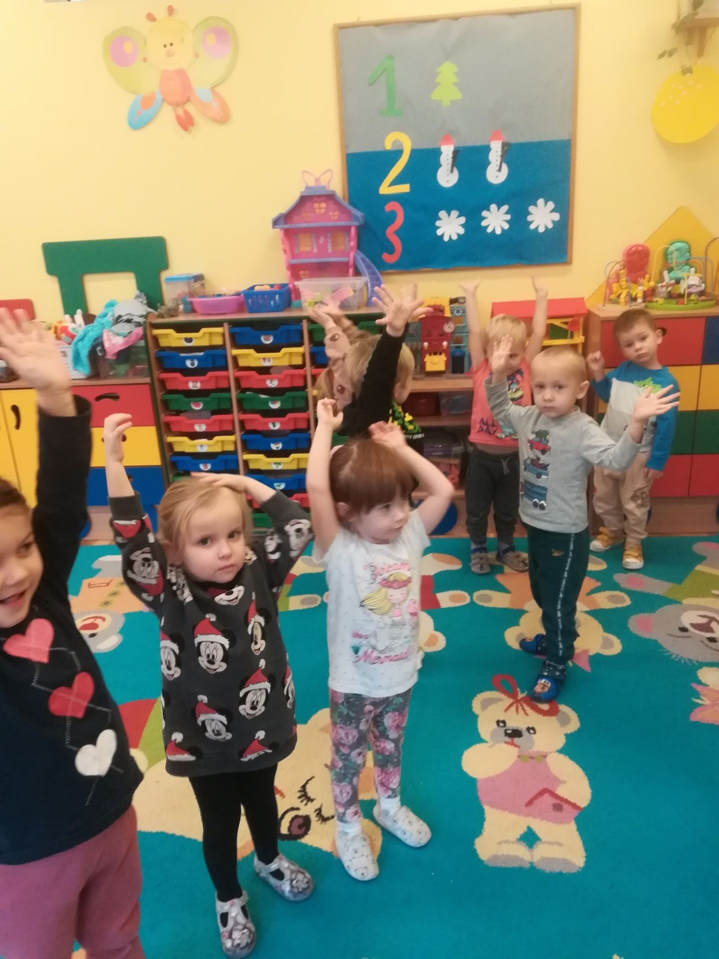 W grudniu we wszystkich grupach wiekowych przeprowadzono zajęcia na temat zawodu sprzedawcy. dzieci dowiedziały się na czym polega praca sprzedawcy. Poznały różne rodzaje sklepów. W czasie zabawy w sklep segregowały różne przedmioty, doskonaliły umiejętność liczenia. Na zakończenie wykonały pracę plastyczną.