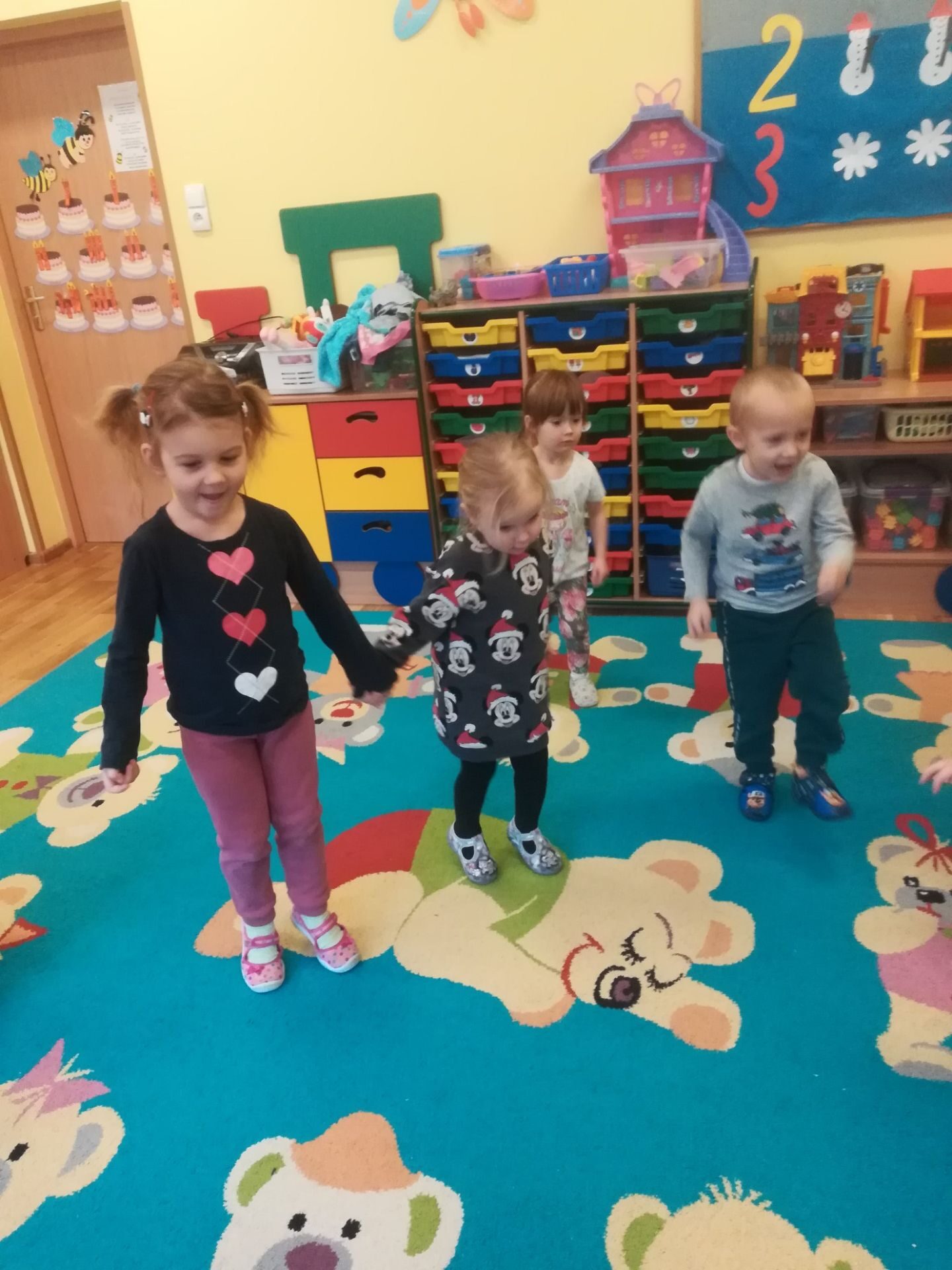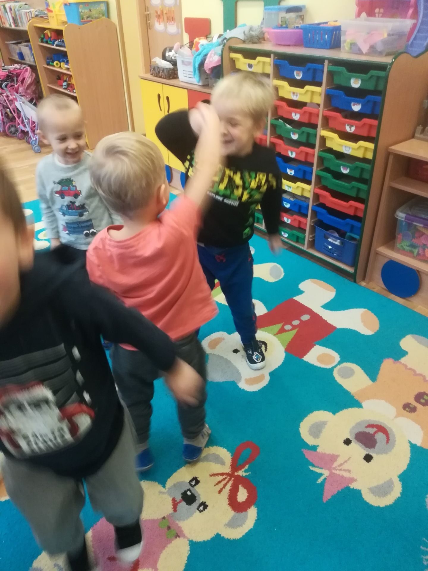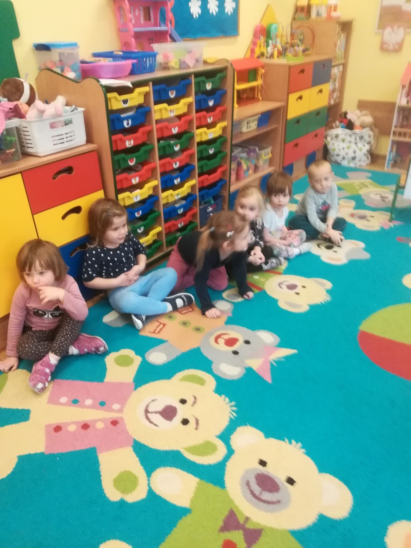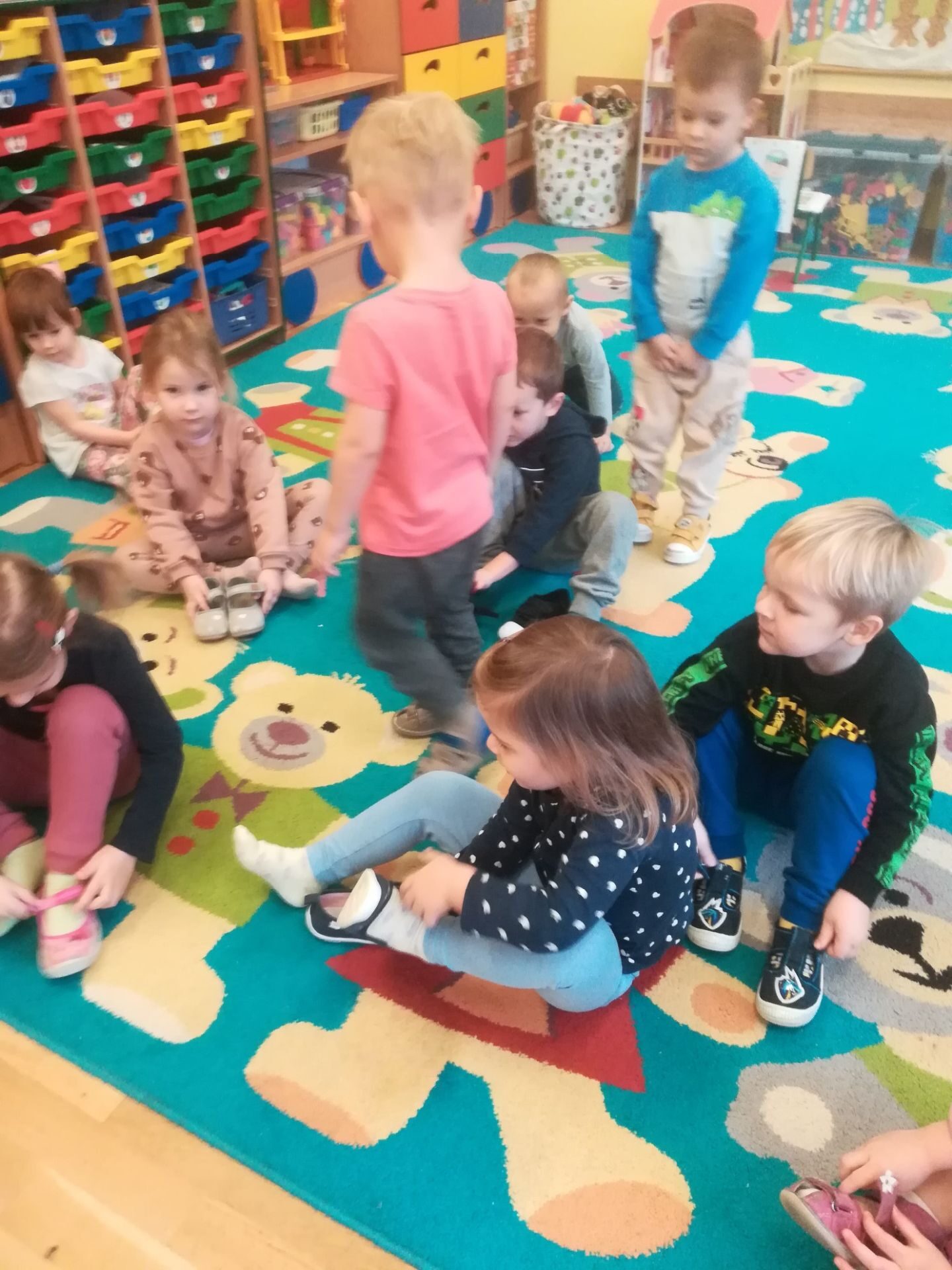 W grudniu we wszystkich grupach wiekowych przeprowadzono zajęcia na temat zawodu sprzedawcy. dzieci dowiedziały się na czym polega praca sprzedawcy. Poznały różne rodzaje sklepów. W czasie zabawy w sklep segregowały różne przedmioty, doskonaliły umiejętność liczenia. Na zakończenie wykonały pracę plastyczną.