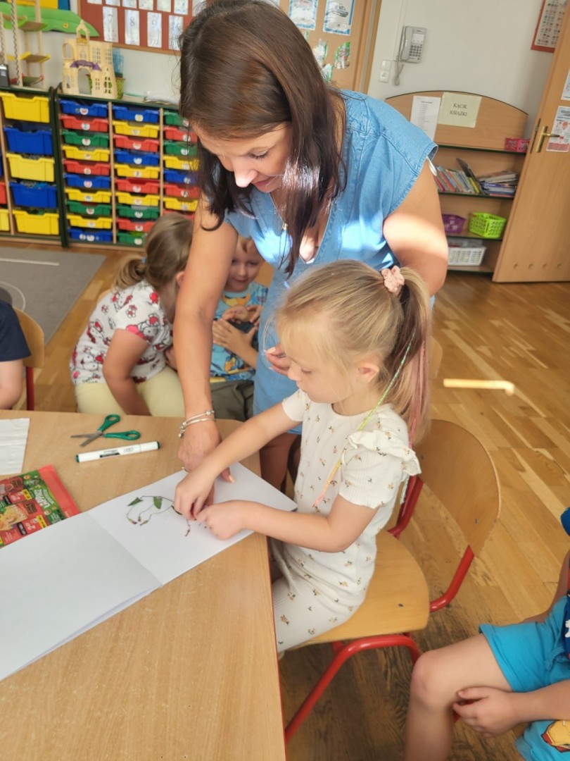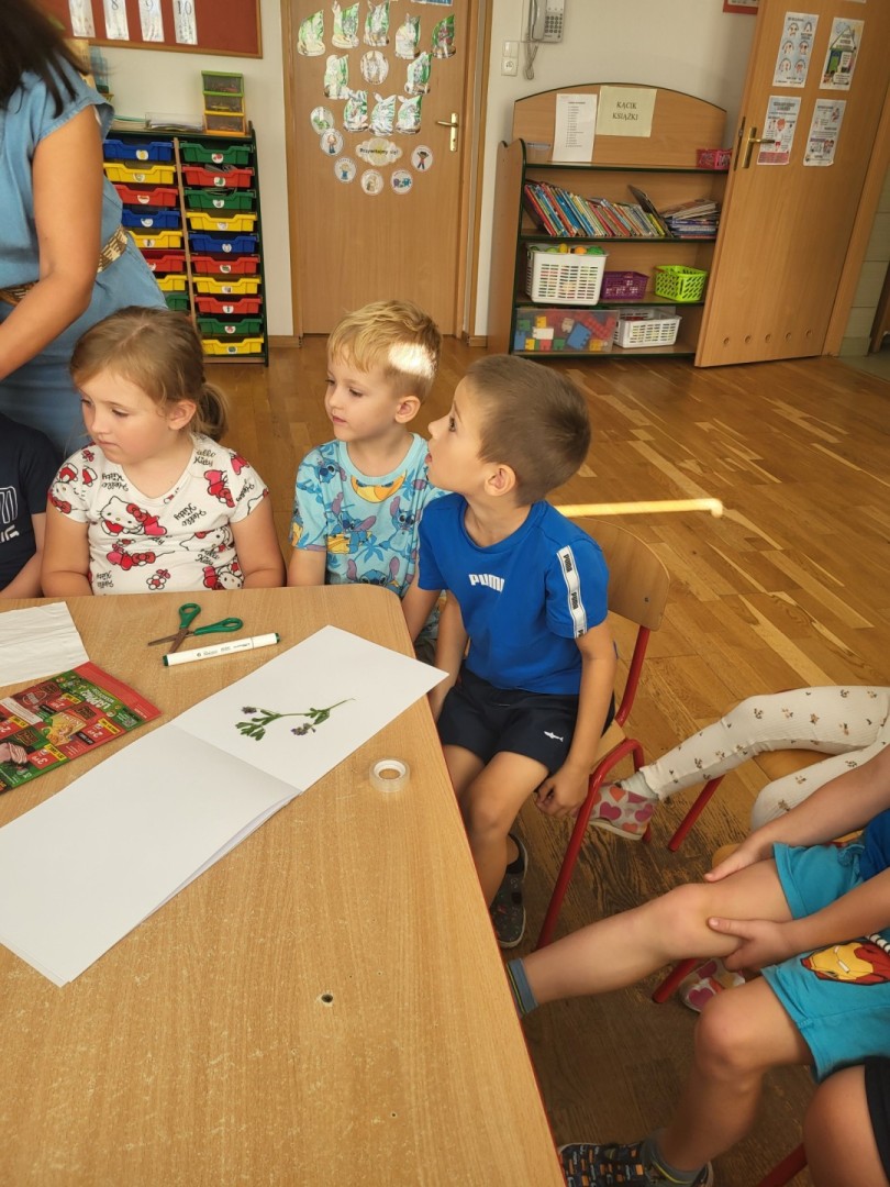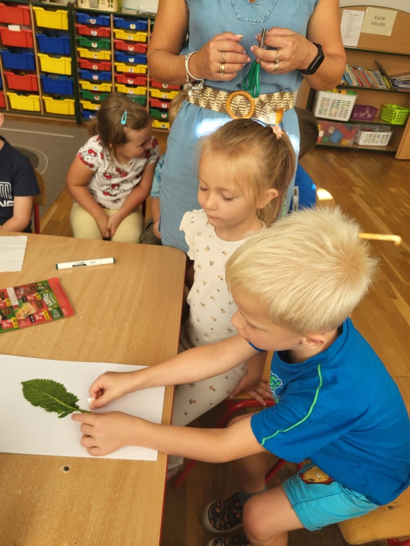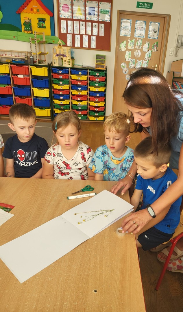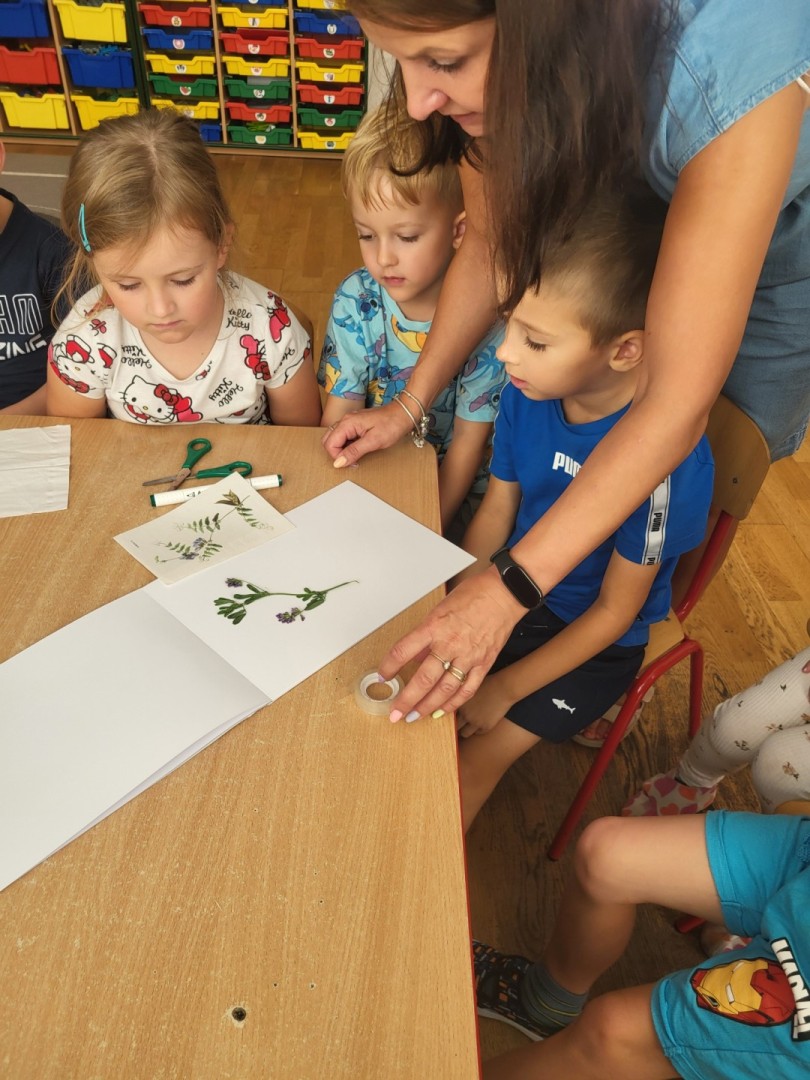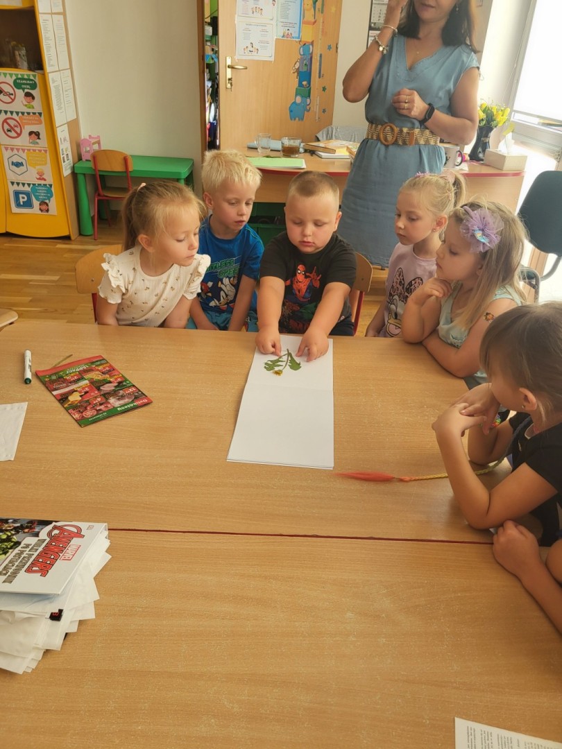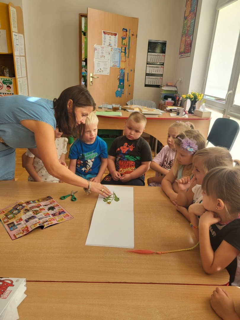 Zielnik przedszkolny to forma aktywności polegająca na tworzeniu przez dzieci zbioru zasuszonych roślin, które następnie są przyklejane do kartek i opisywane. Jest to doskonały sposób na naukę nazw roślin, rozwijanie umiejętności obserwacji i ciekawości świata przyrody, a także rozwijanie zdolności manualnych i kreatywności. Dzieci uczą się identyfikować rośliny, zbierać je w naturze (zgodnie z zasadami ochrony przyrody) i dokumentować swoje odkrycia. Podczas wrześniowych spacerów poza teren przedszkola przedszkolaki z grupy zajączki zbierały z pobliskich zielonych skwerków rośliny, które następnie wkładały między kartki książek. Po zasuszeniu, rośliny przyklejały za pomocą taśmy klejącej do kartek technicznych. Kolejnym etapem było wyszukiwanie w książkach przyrodniczych roślin w celu poznania ich nazwy i podpisania. Przedszkolaki z wielkim zaangażowaniem pracowały podczas wykonywania zielnika. Największą frajdę dzieciom sprawiło odnalezienie w encyklopedii właściwej rośliny, co sprawdzały za pomocą internetu i telefonu nauczycielki. Zapraszamy do obejrzenia zbiorowej pracy dzieci. Zielnik grupy “Zajączki” znajduje się w szatni na regale z Biblioteczką.